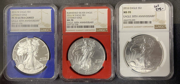 2011 5pc Set 25Th Anniversary Silver Eagles (5) MS-PF69 NGC