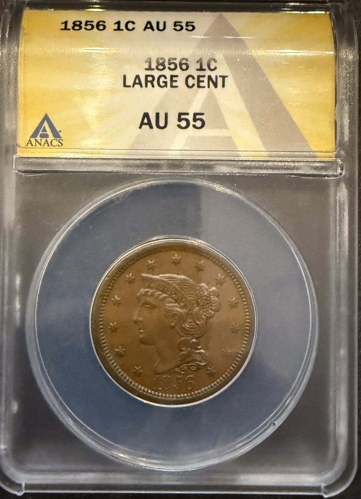 1856 Large Cent, AU55 ANACS, (11918)