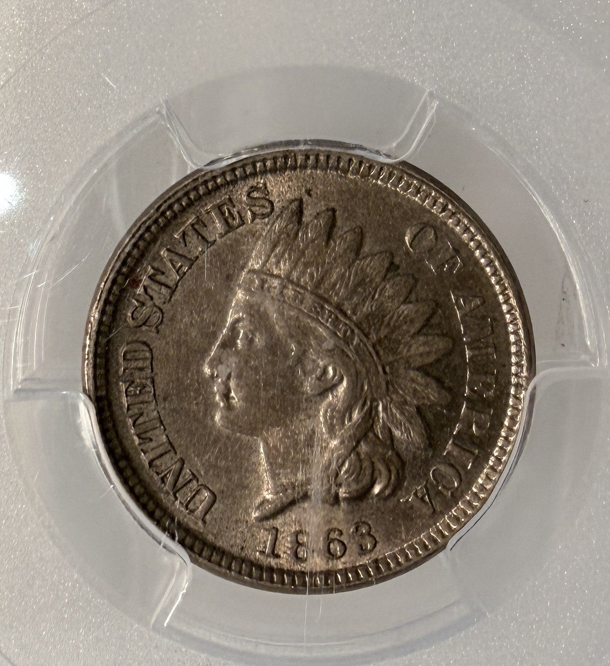 1863 CN Indian Head Cent, AU58 PCGS, (13238)