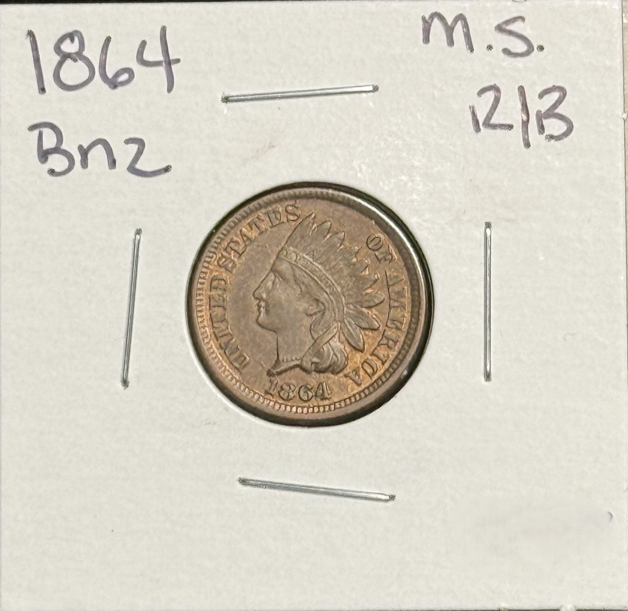 1864 BNZ Indian Head Cent, MS60+. (11594)
