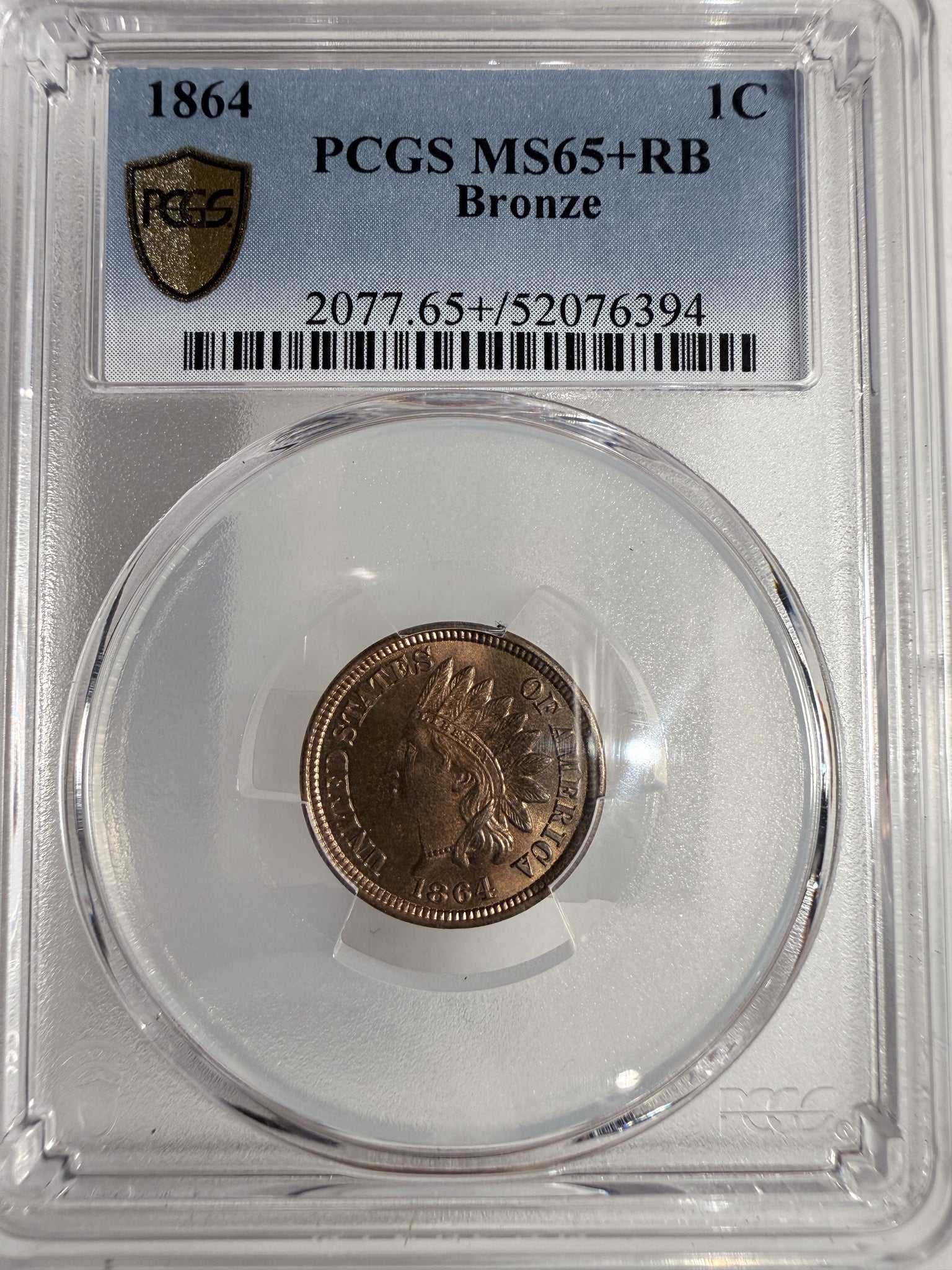 1864 Indian Head Cent, Bronze, MS65+RB PCGS Gold Shield (13094)