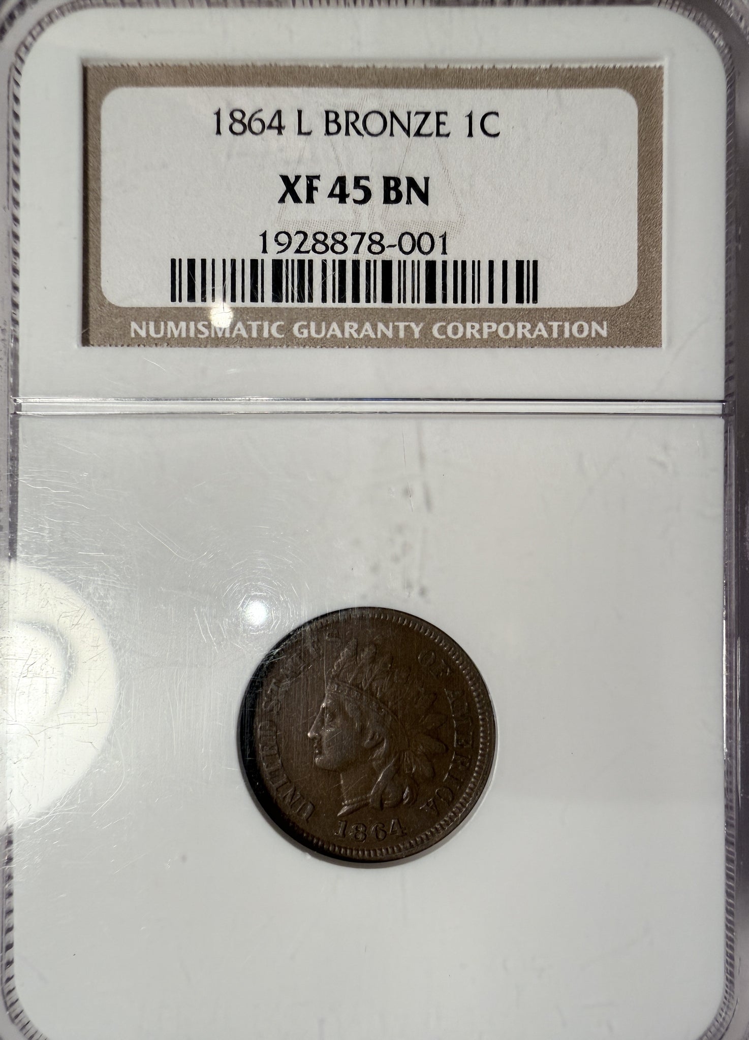 1864 'L' Indian Head Cent, XF45 NGC, (13240)