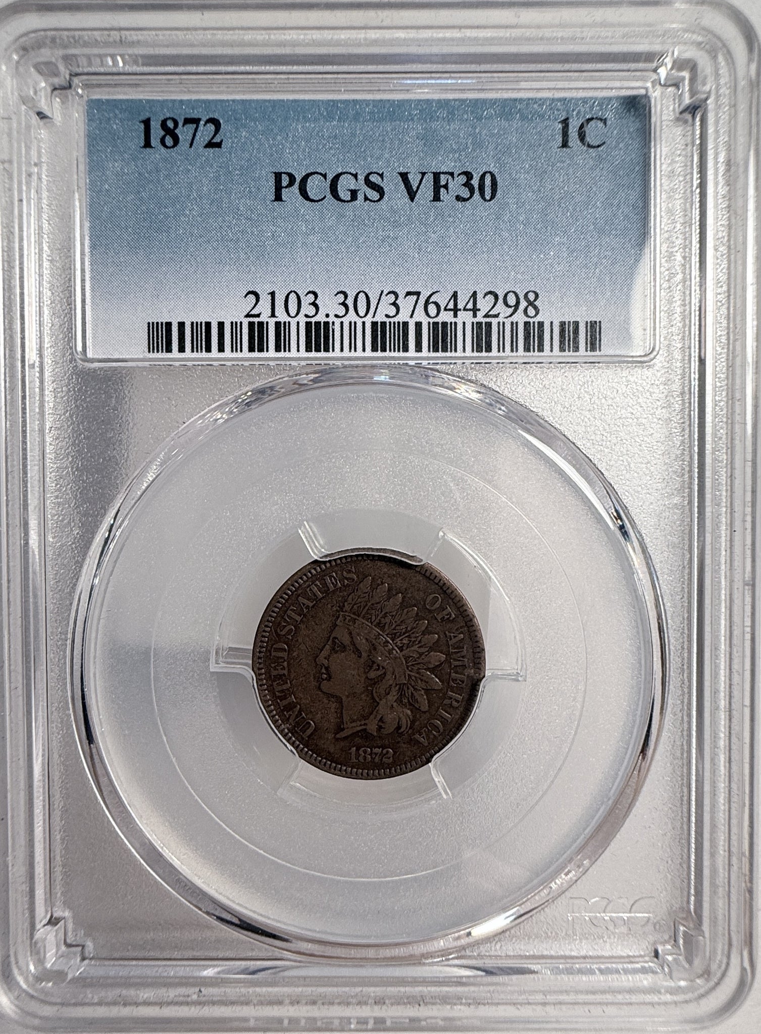 1872 Indian Head Cent, VF30 PCGS. (13496)