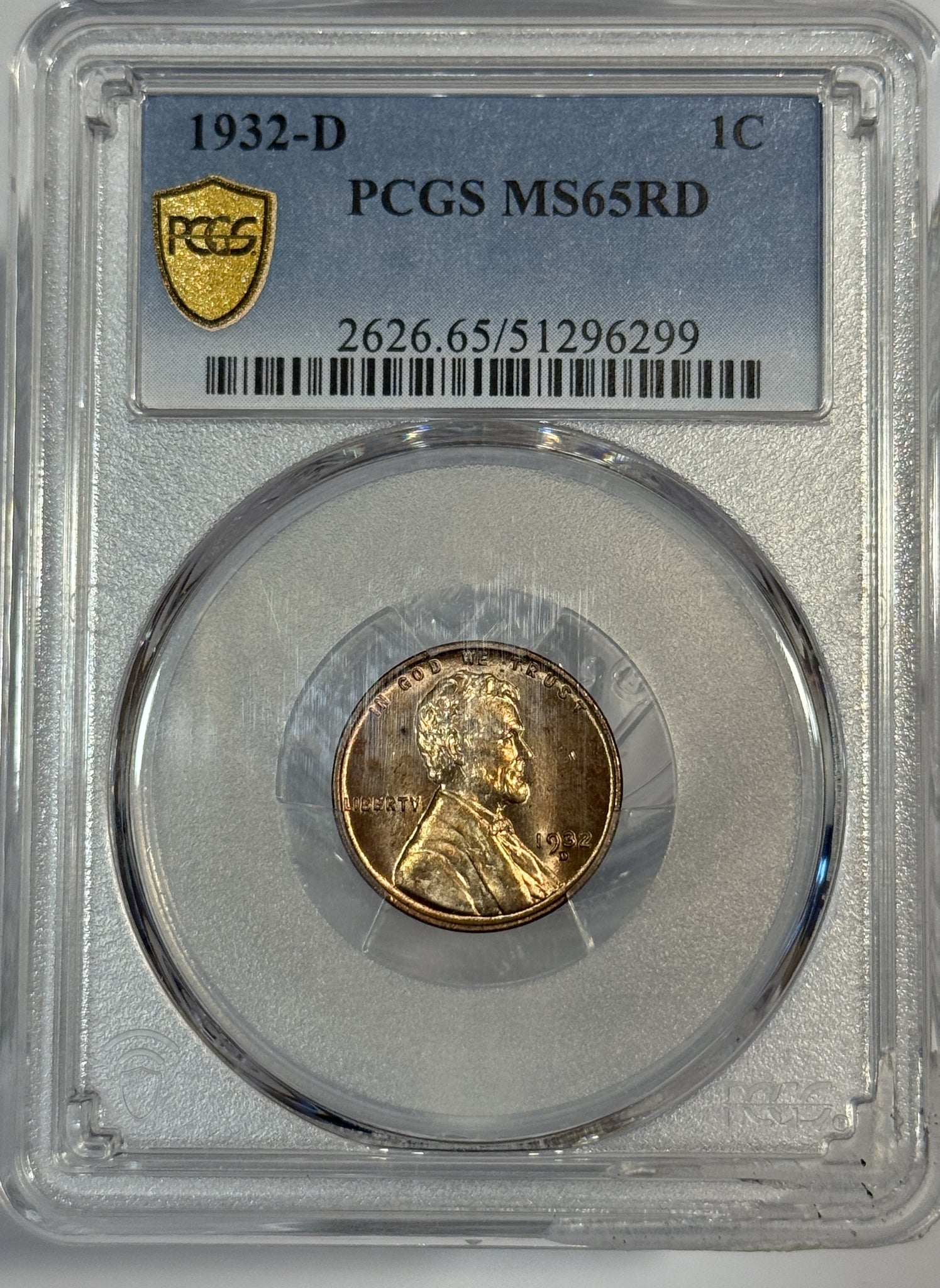 1932-D Lincoln Cent MS65RD PCGS, (12556)
