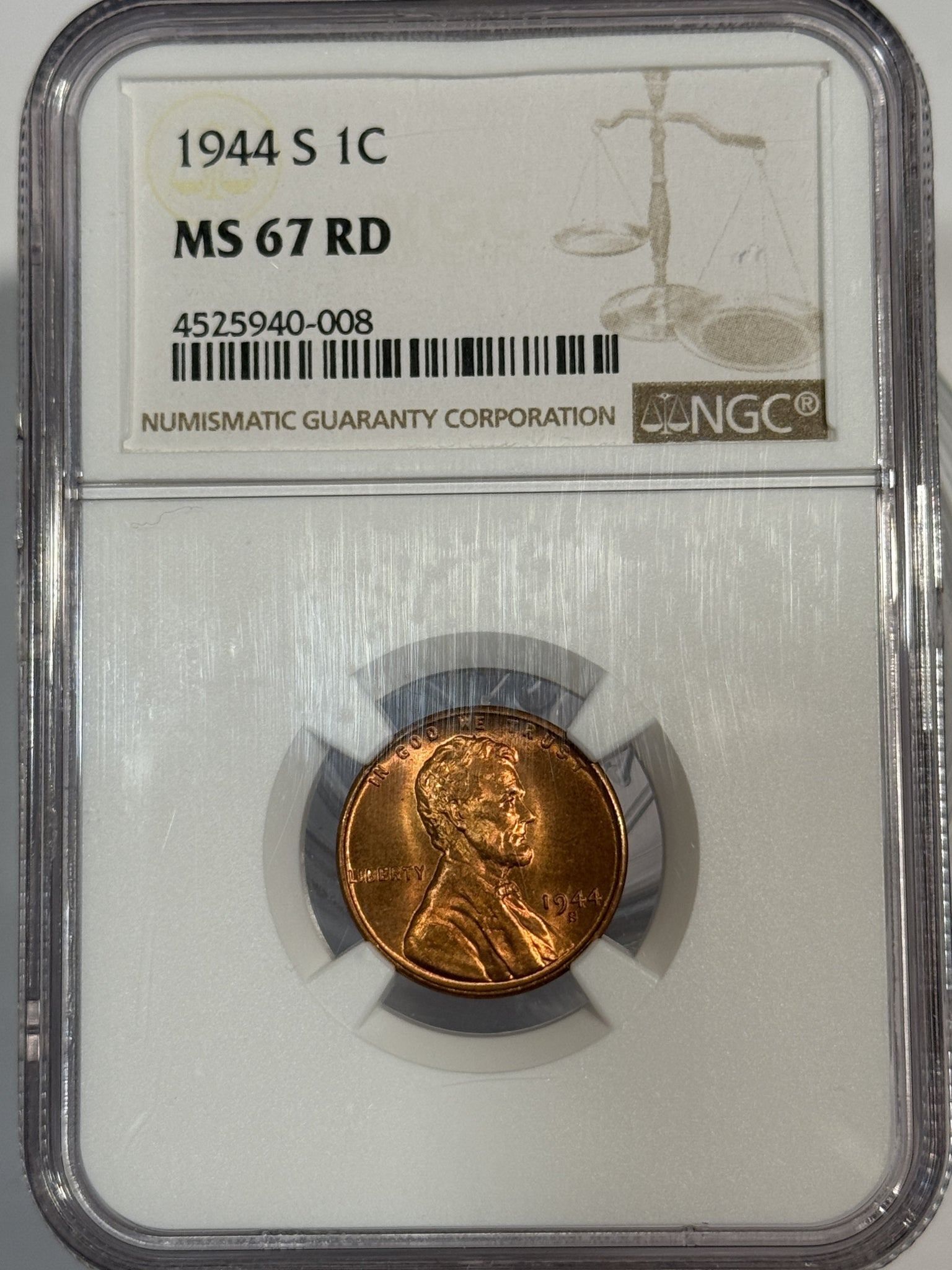 1944-S Lincoln Cent MS67RD NGC, (12532)