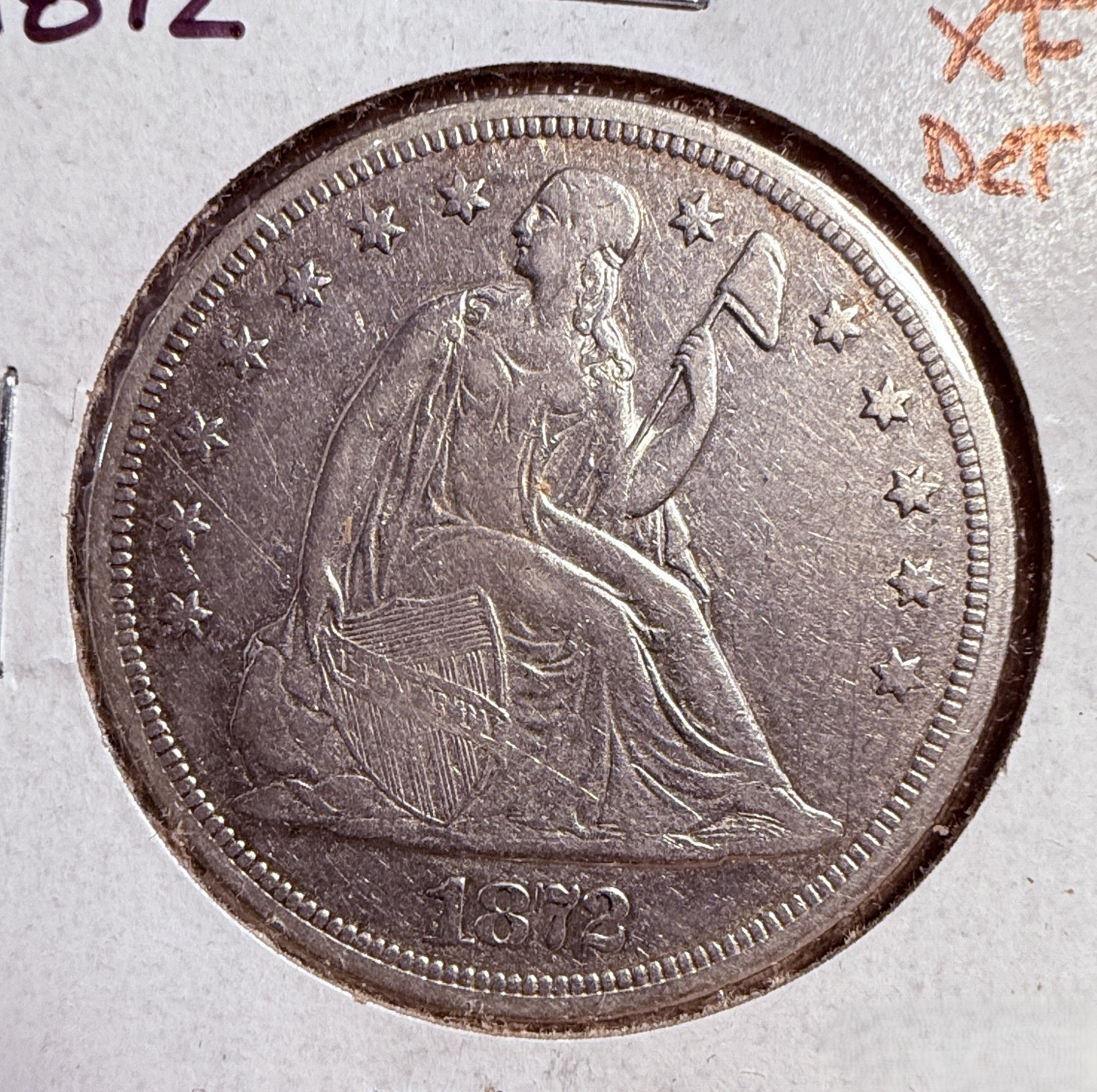 1872 Seated Liberty Silver Dollar, XF Det, (13806)