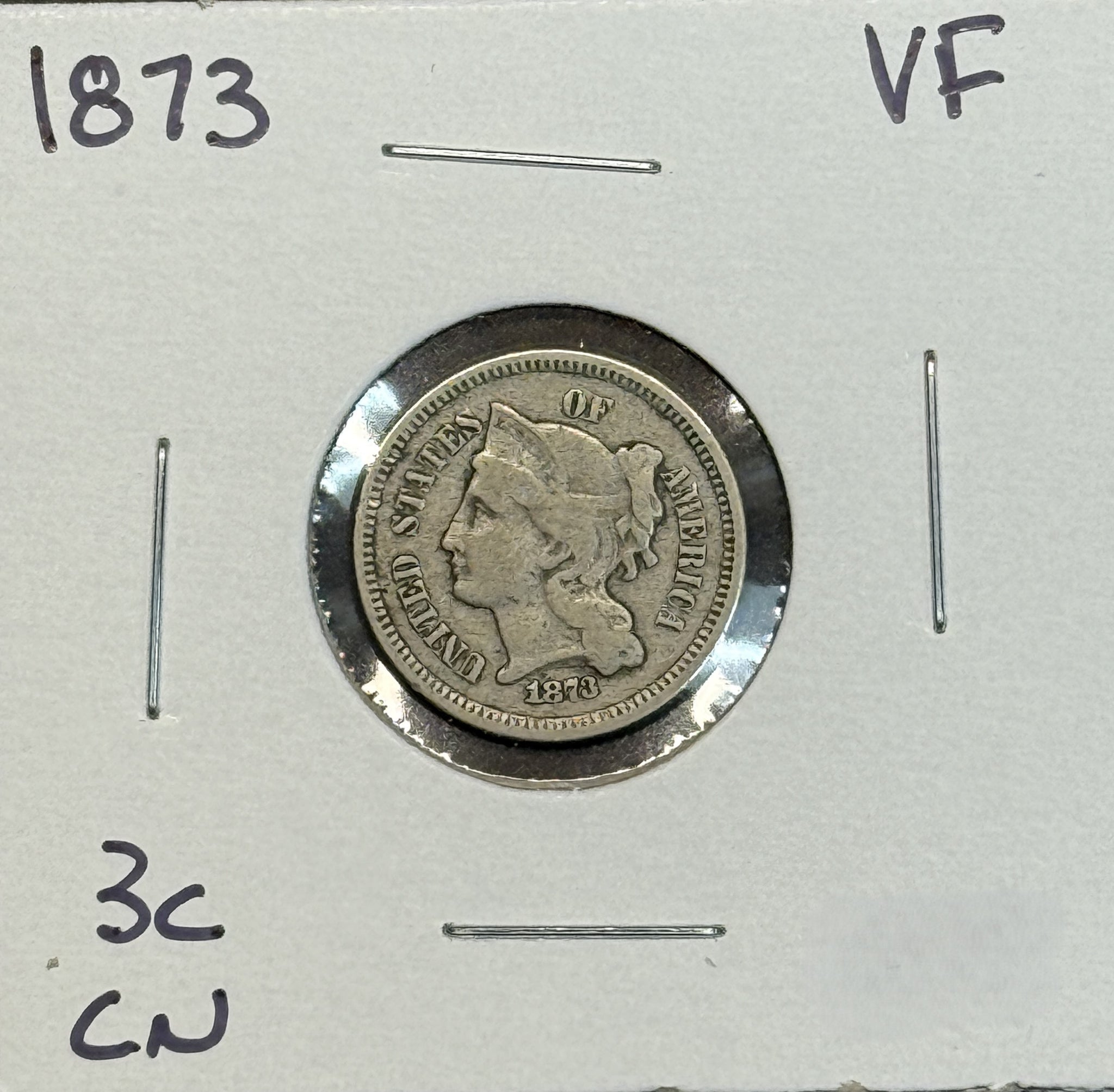 1873 3-Ct Copper Nickel, VF (11425)