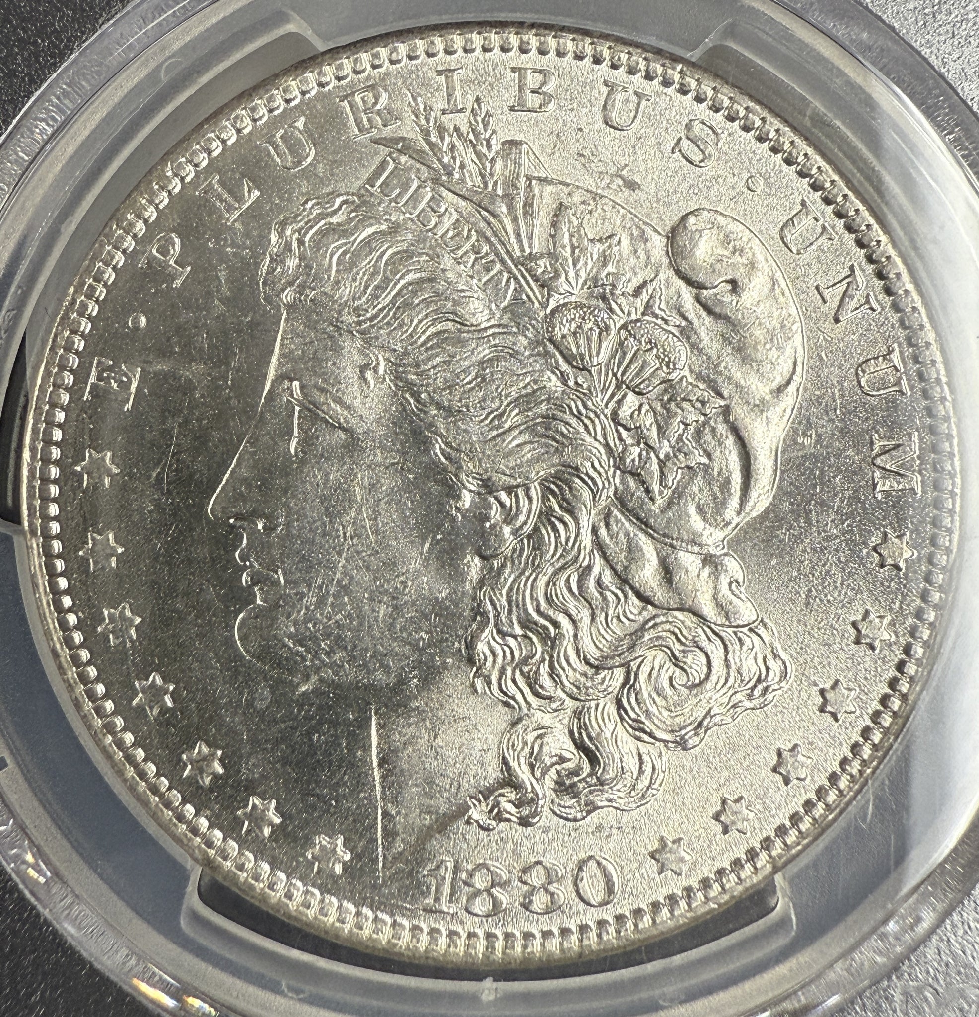 1880-O Morgan Silver Dollar, MS62, PCGS Gold Shield (10460)