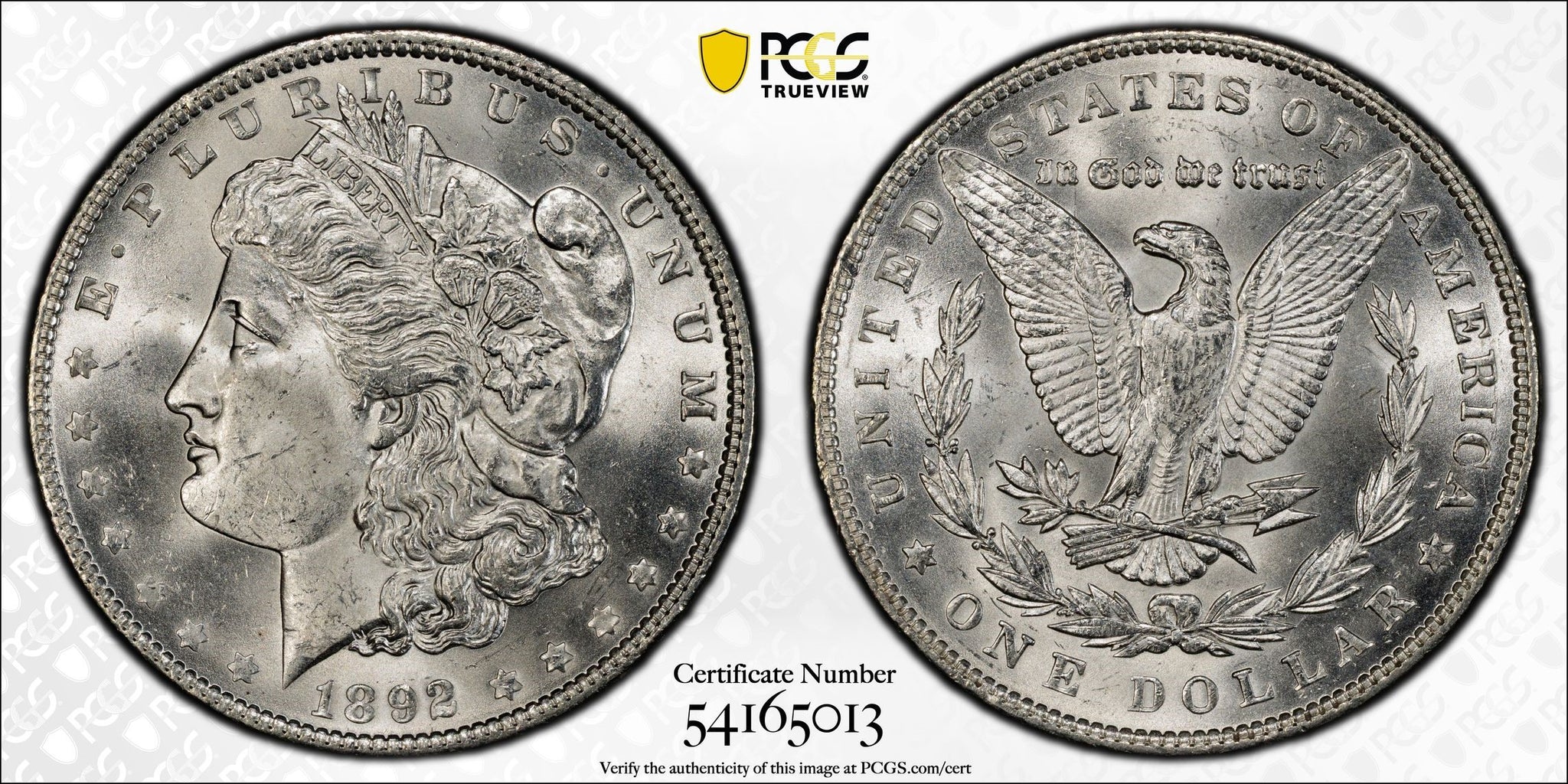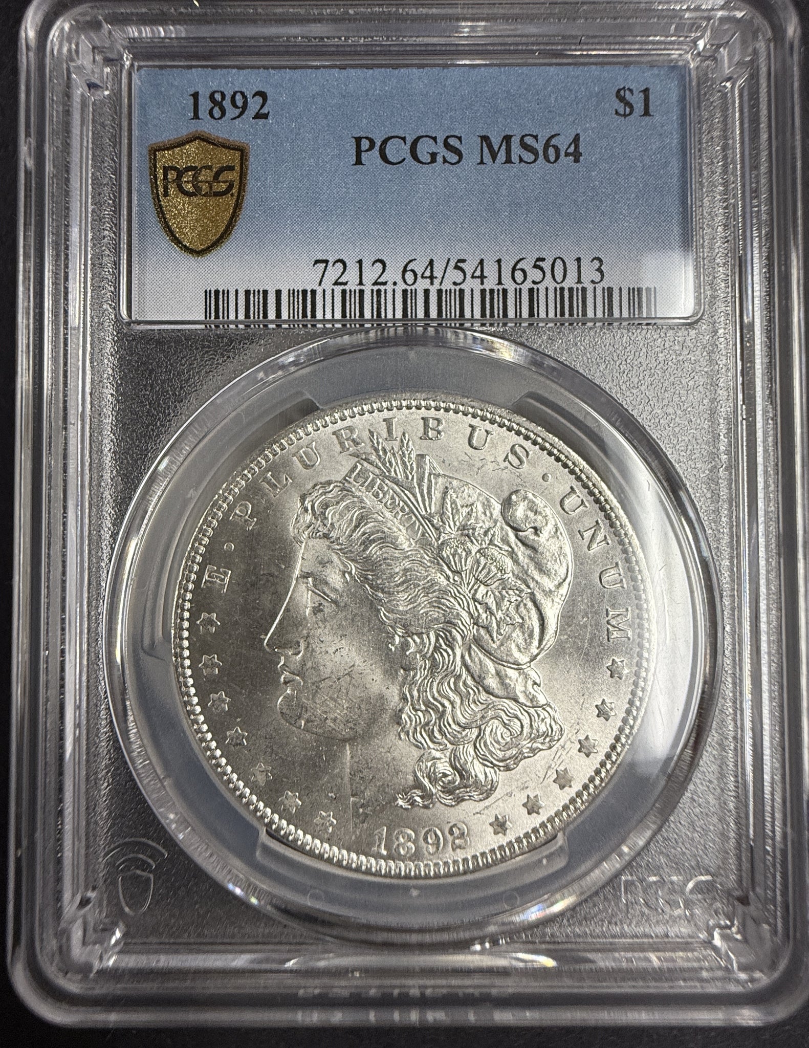 1892 Morgan Silver Dollar, MS64, PCGS Gold Shield (10472)