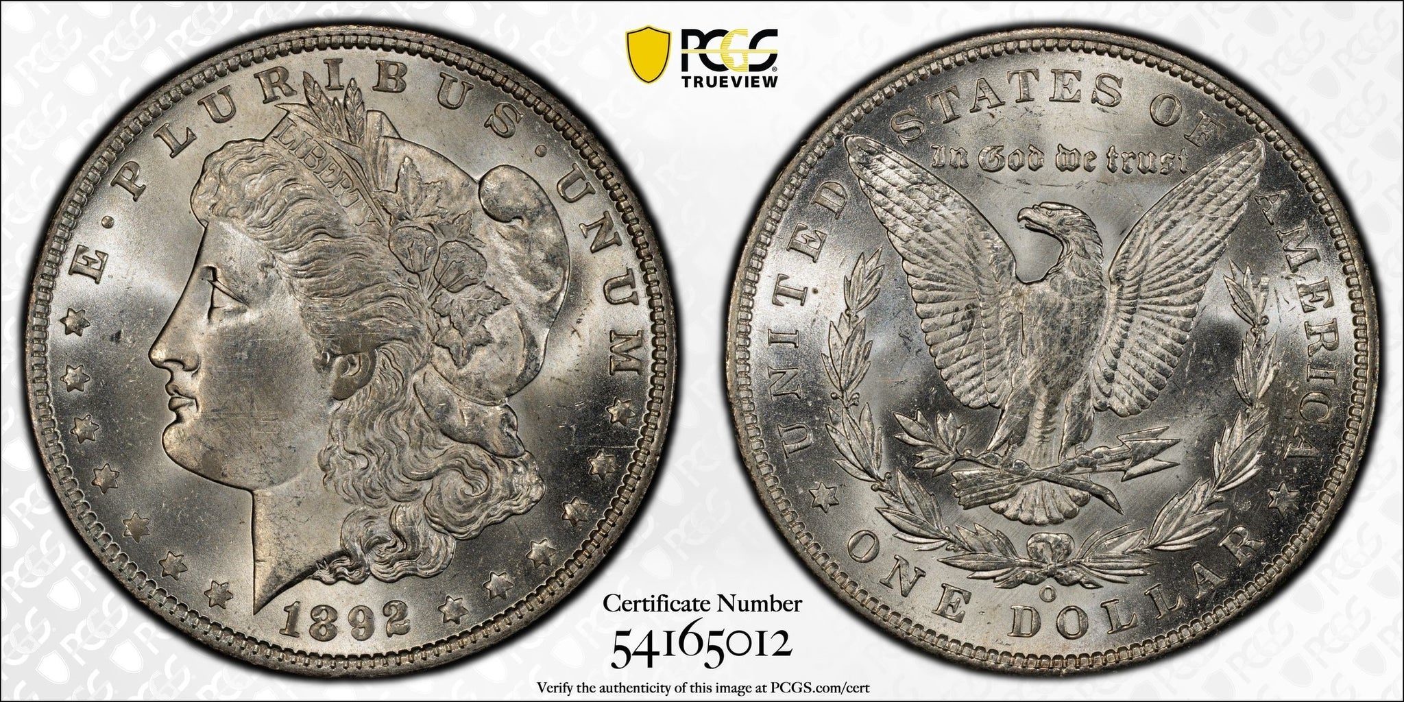 1892-O Morgan Silver Dollar, MS63, PCGS Gold Shield (10478)