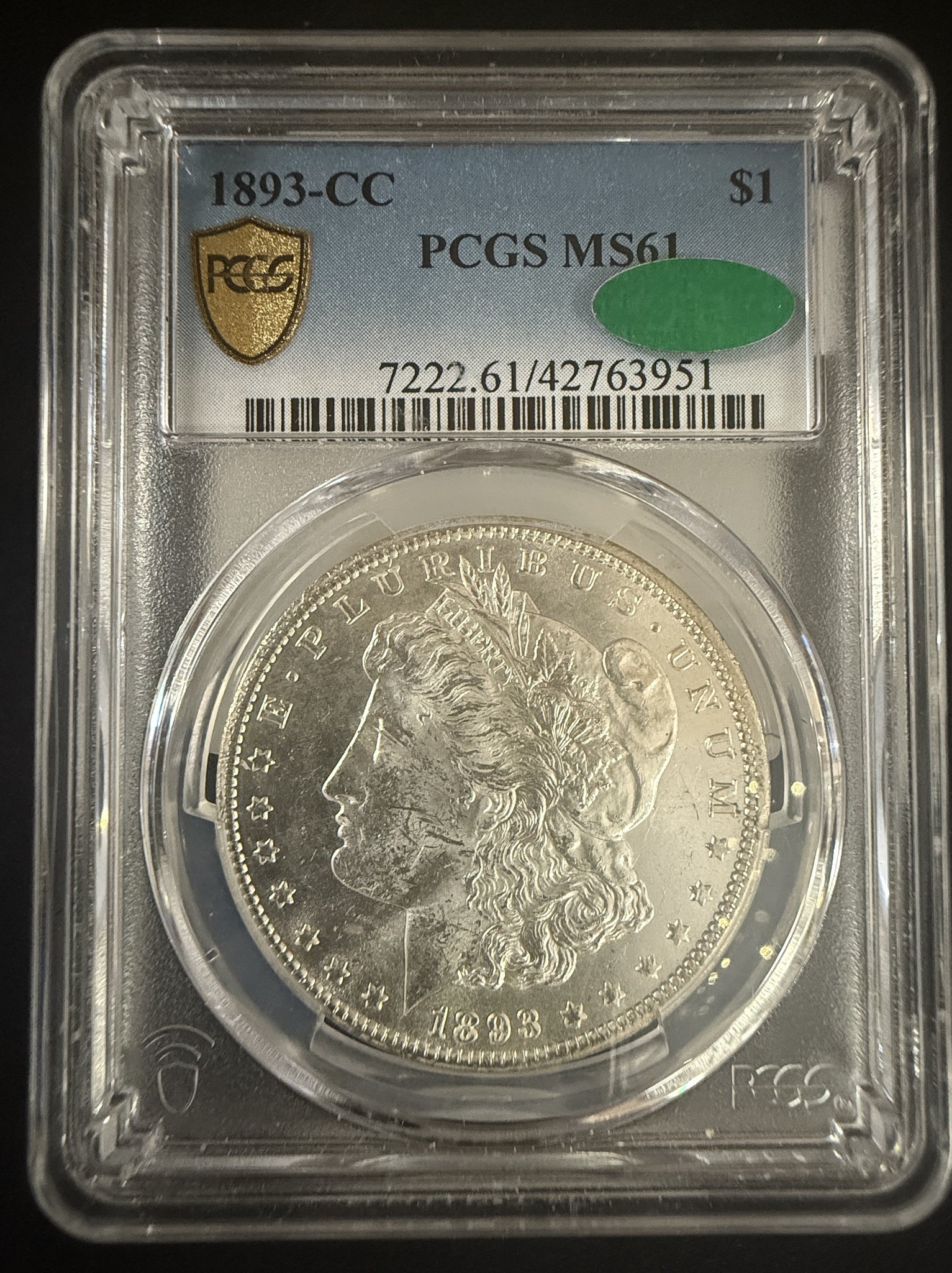 1893-CC Morgan Silver Dollar, MS61, PCGS Gold Shield (10590)