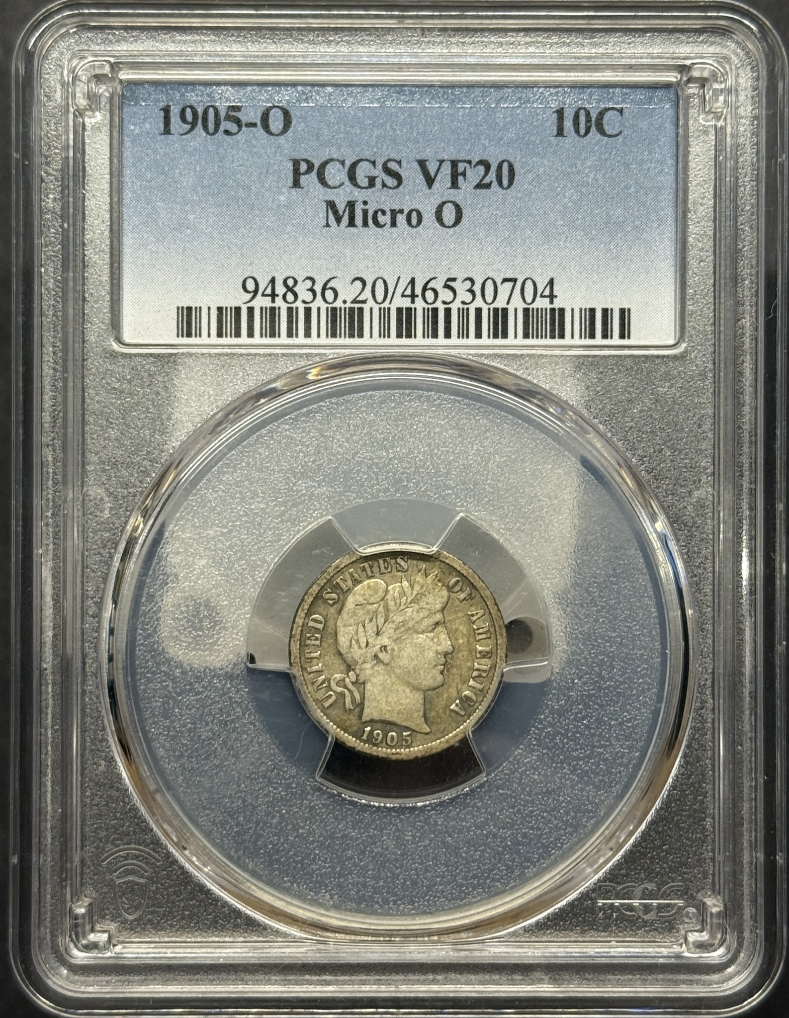 1905-O Barber Dime, Micro-O, VF20 PCGS (11996)