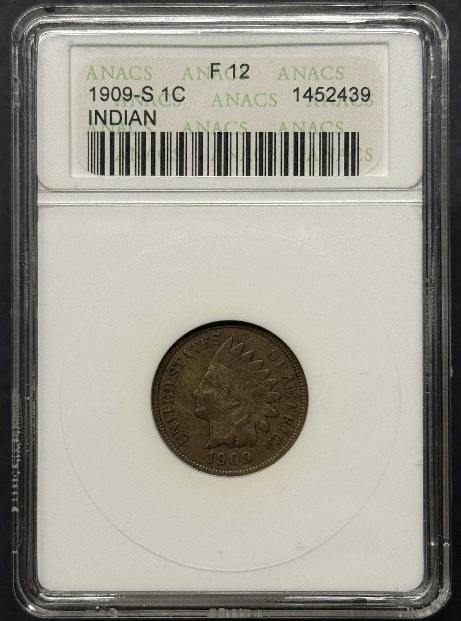 1909-S Indian Head Cent, F-12 ANACS (11977)