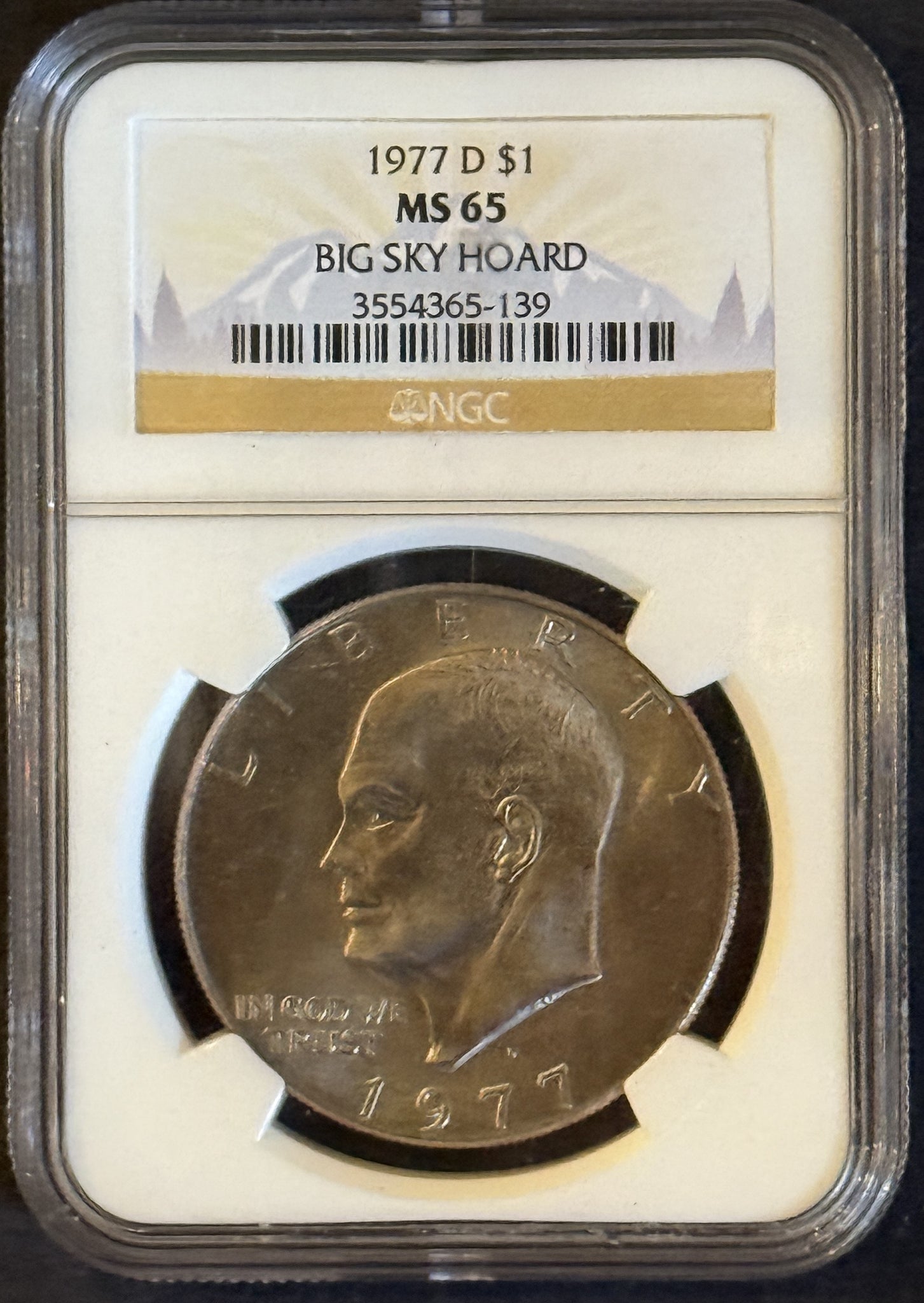 1977-D Eisenhower Dollar, MS65. NGC. Big Sky Hoard Holder