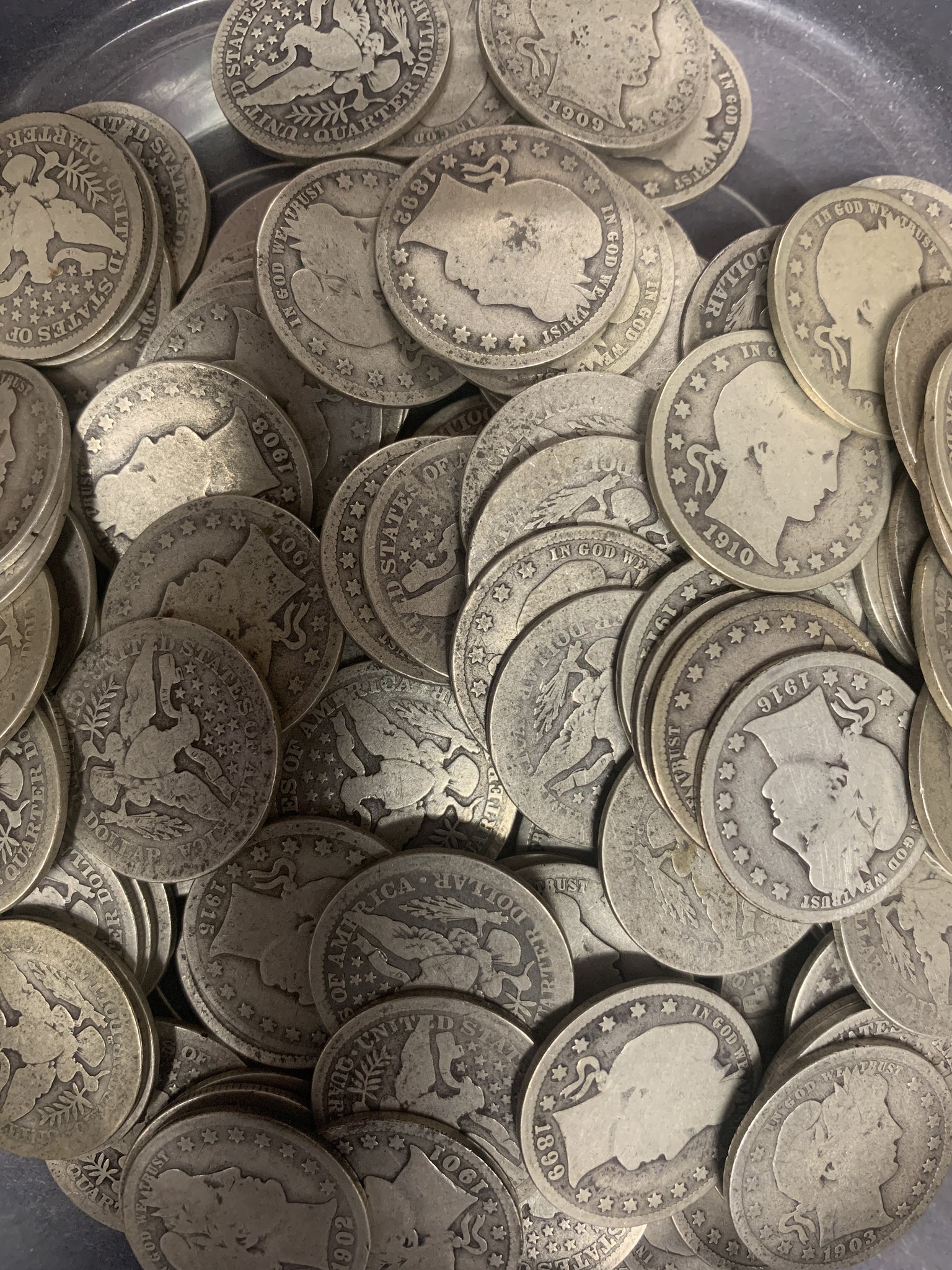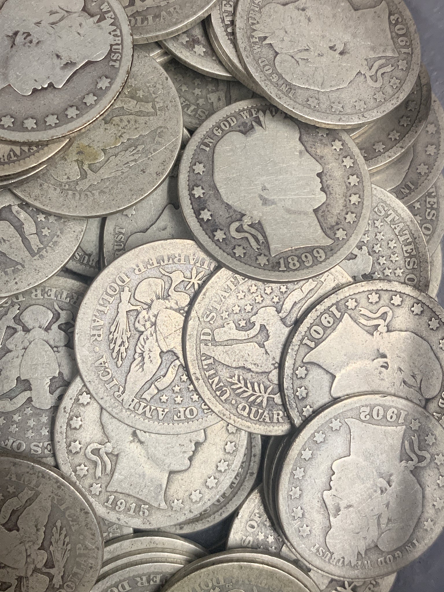 Lot 8pcs, $2.00 FV 90% Silver Barber Quarters, Average Circulated
