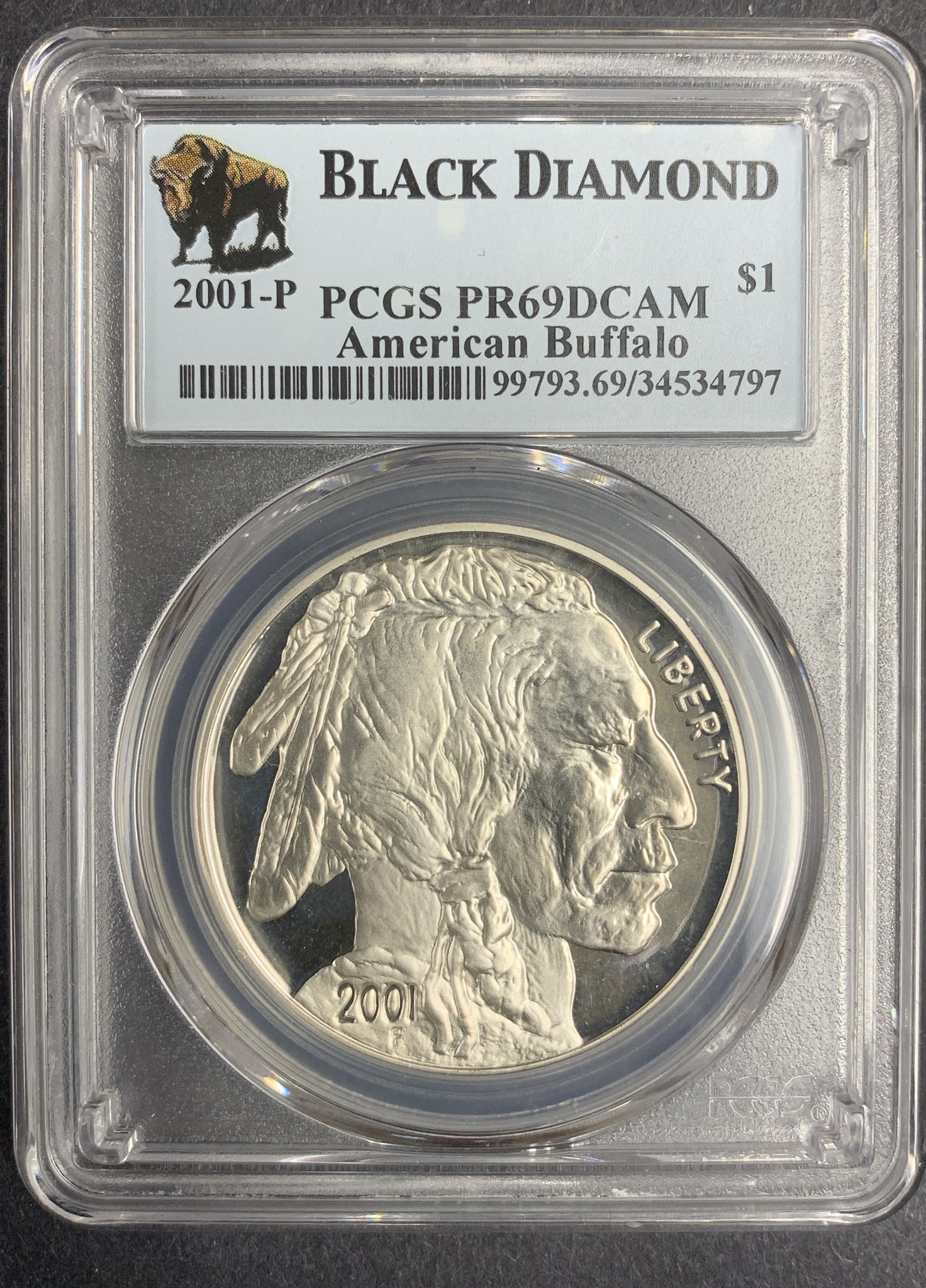 2001-P American Buffalo Silver Commemorative, PF69DCAM PCGS. Black Diamond, "American Buffalo" Holder