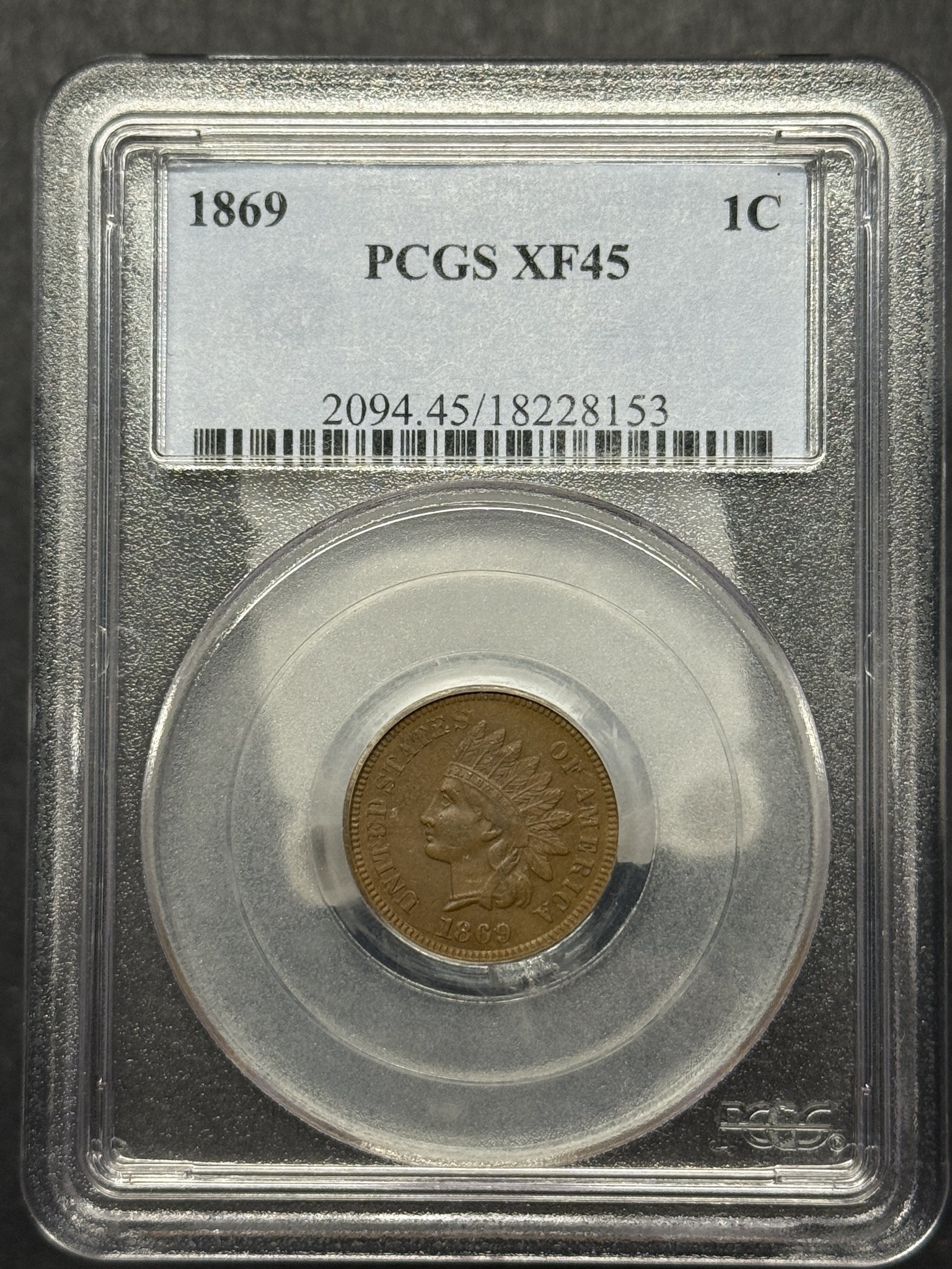 1869 Indian Head Cent, XF45 PCGS (11968)