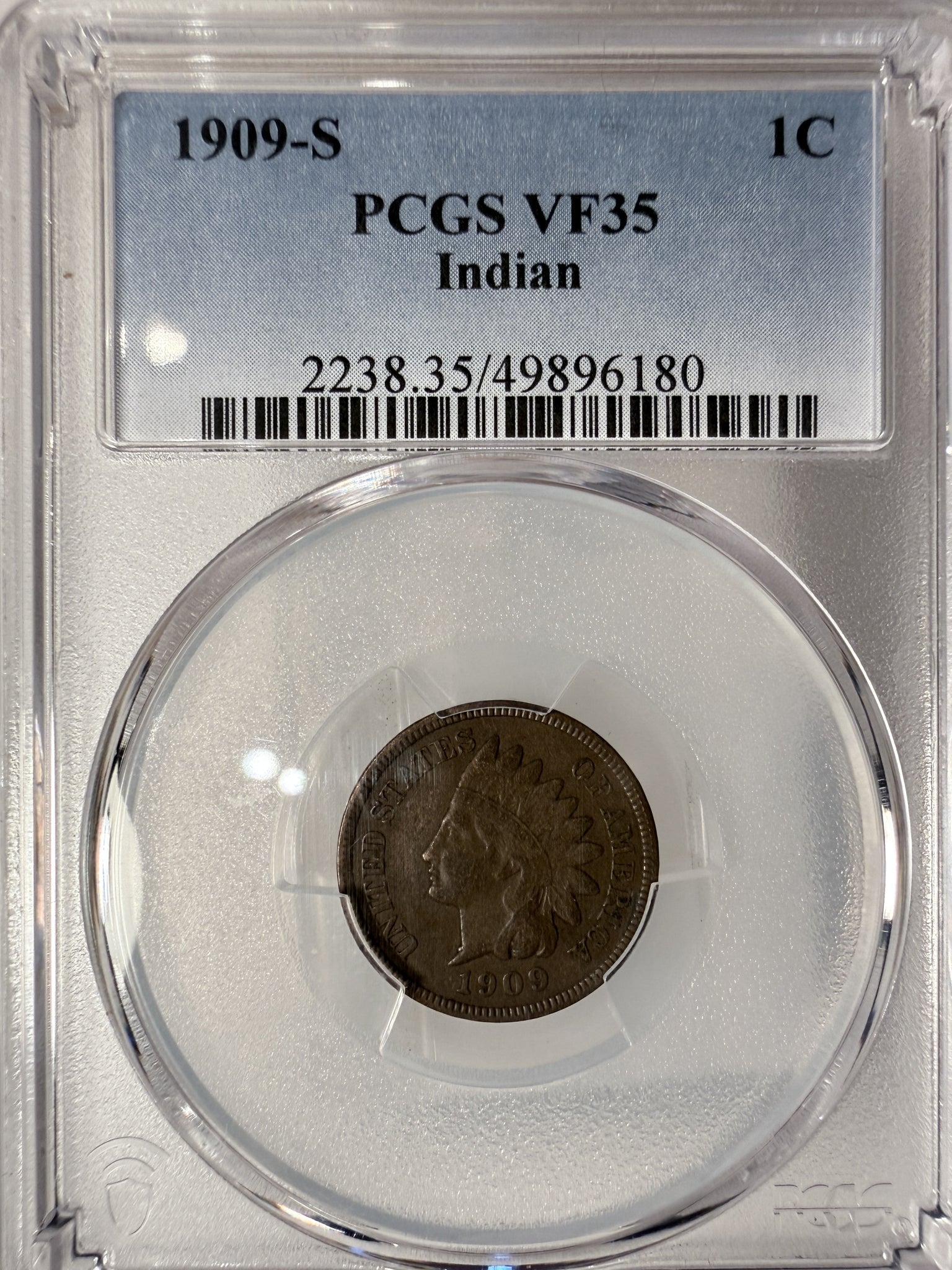 1909-S Indian Head Cent, VF35, PCGS, (13248)