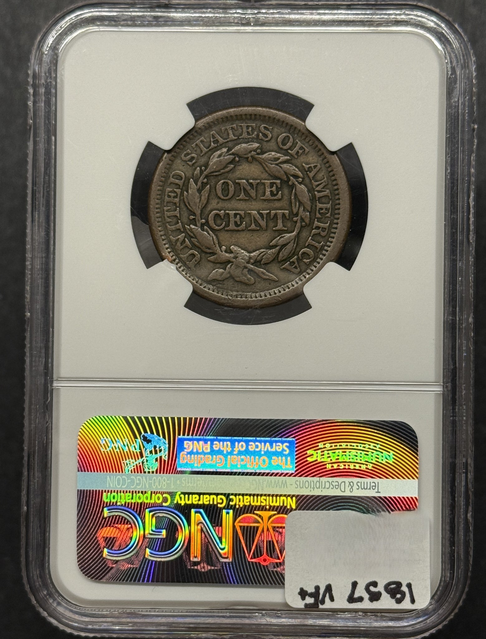 1857 Large Cent, Small Date, VF35BN NGC (11959)