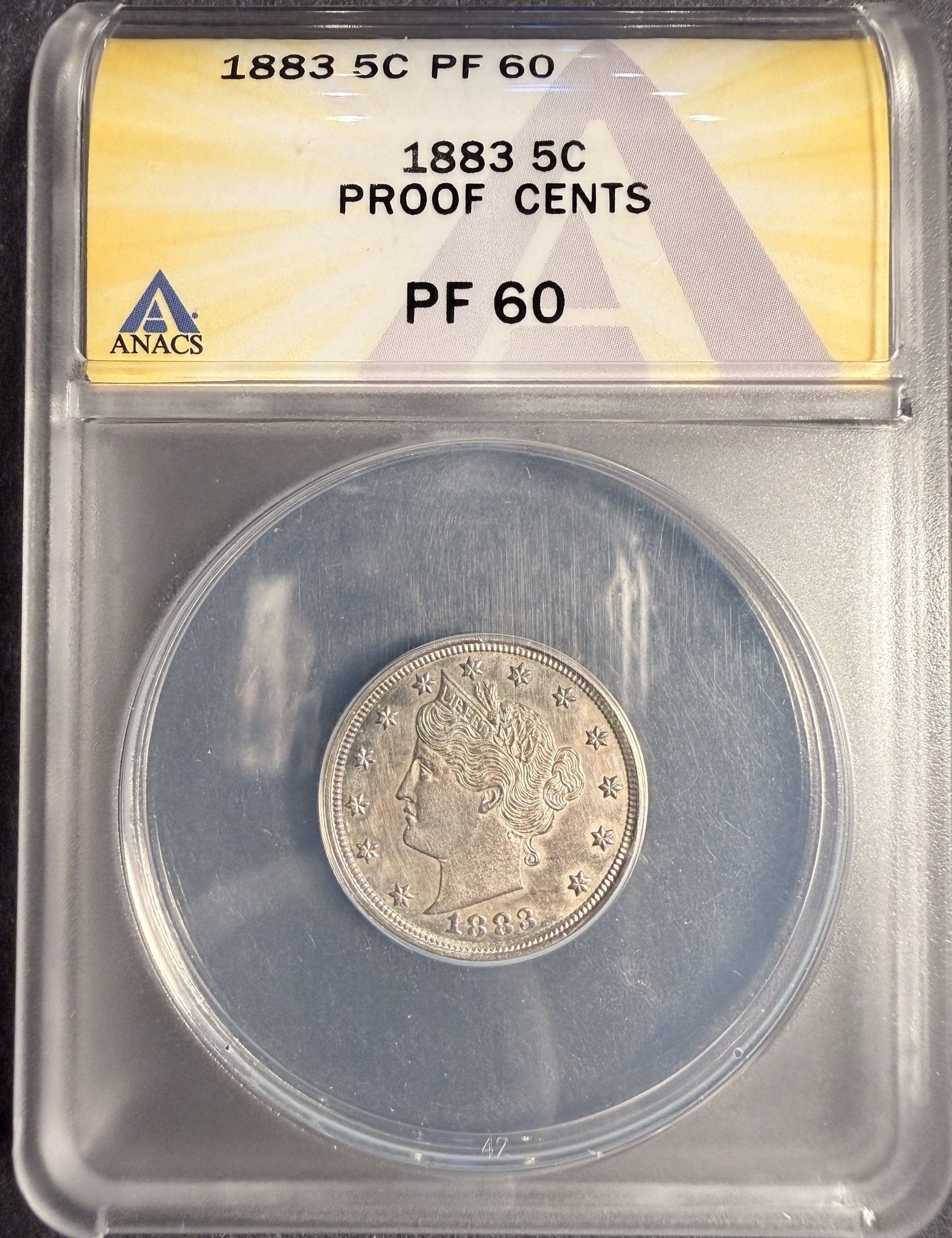 1883 Liberty Nickel With Cents, Proof 60 ANACS (13036). Great Eye Appeal