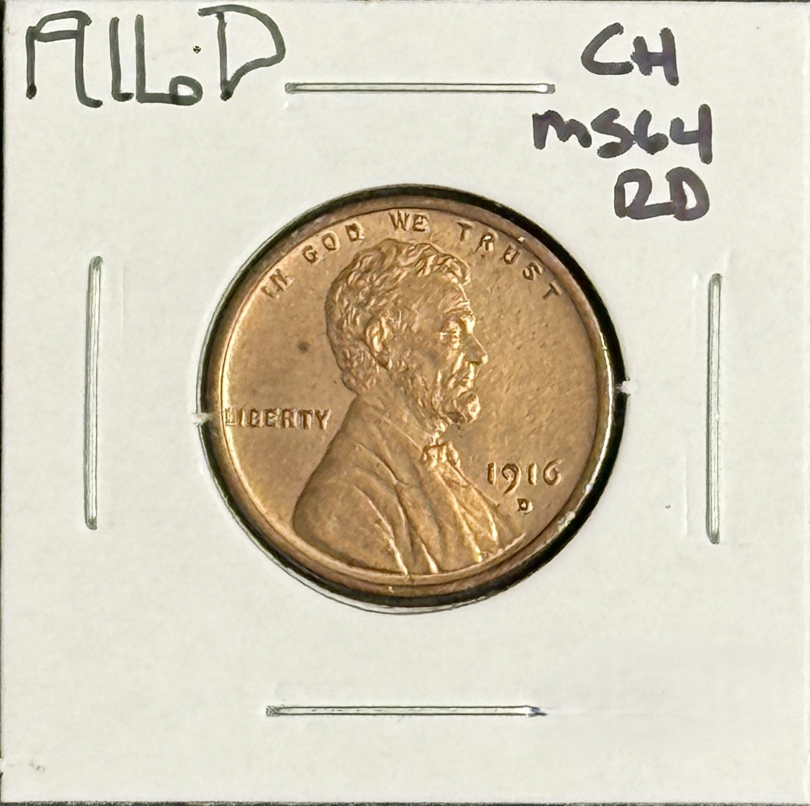 1916-D Lincoln Wheat Cent, MS63+RED. (11291)