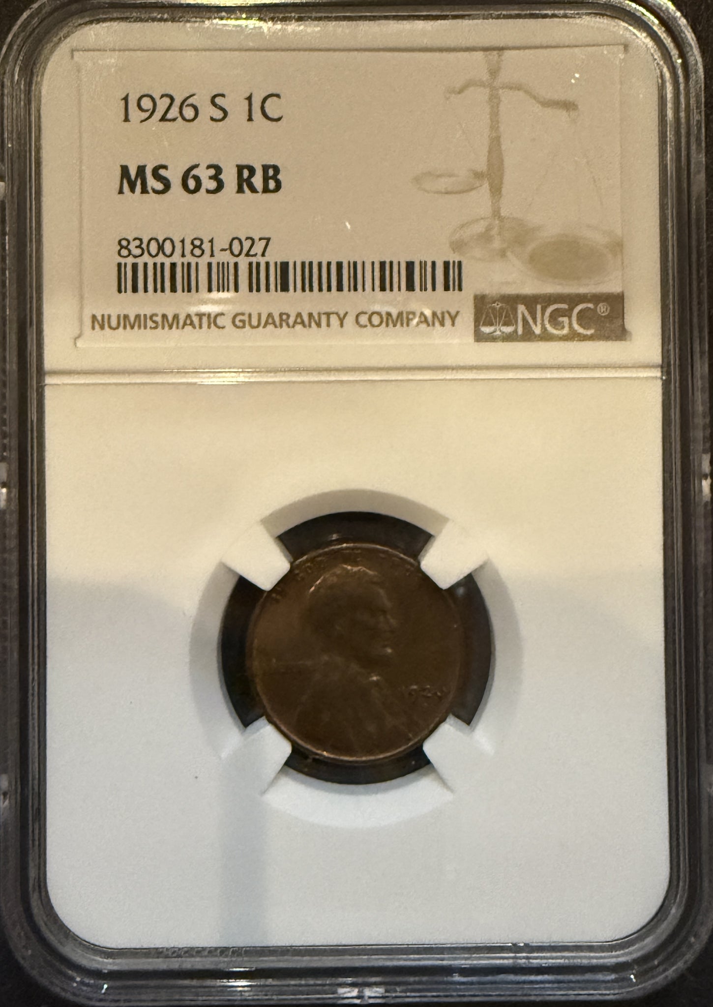 1926-S Lincoln Wheat Cent, MS63RB. NGC (11797)