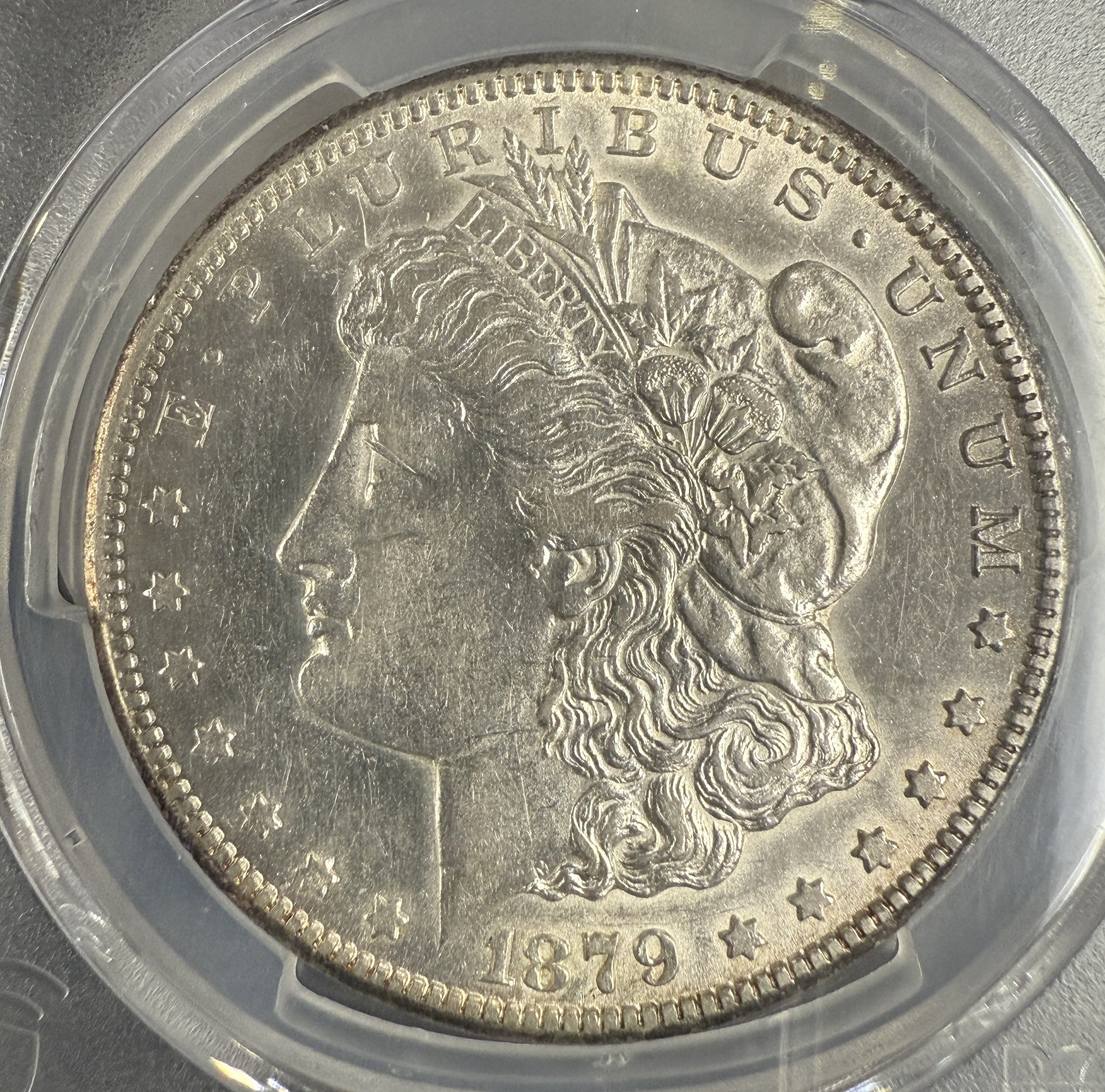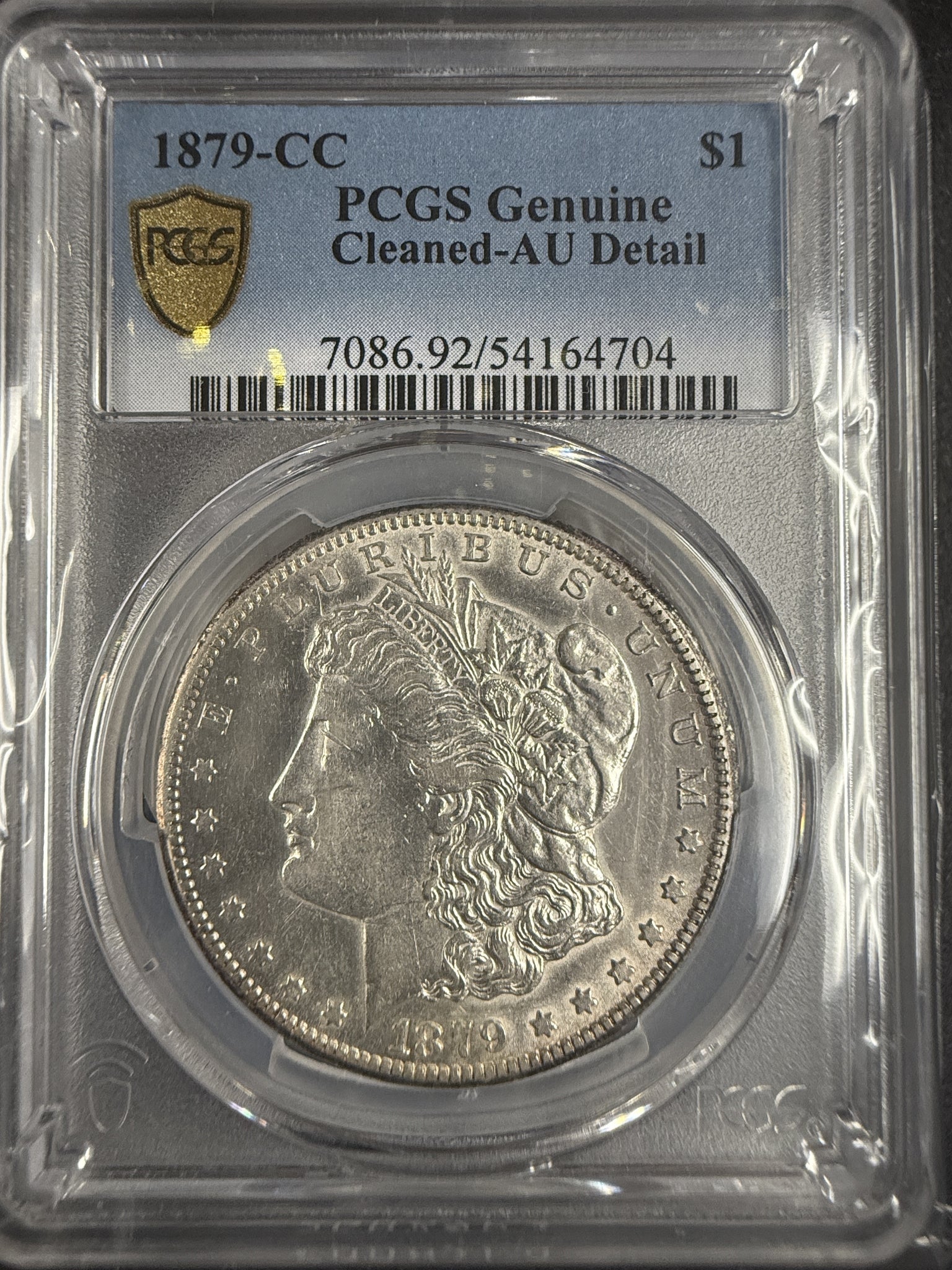 1879-CC Morgan Silver Dollar, AU Details PCGS Gold Shield (10360)