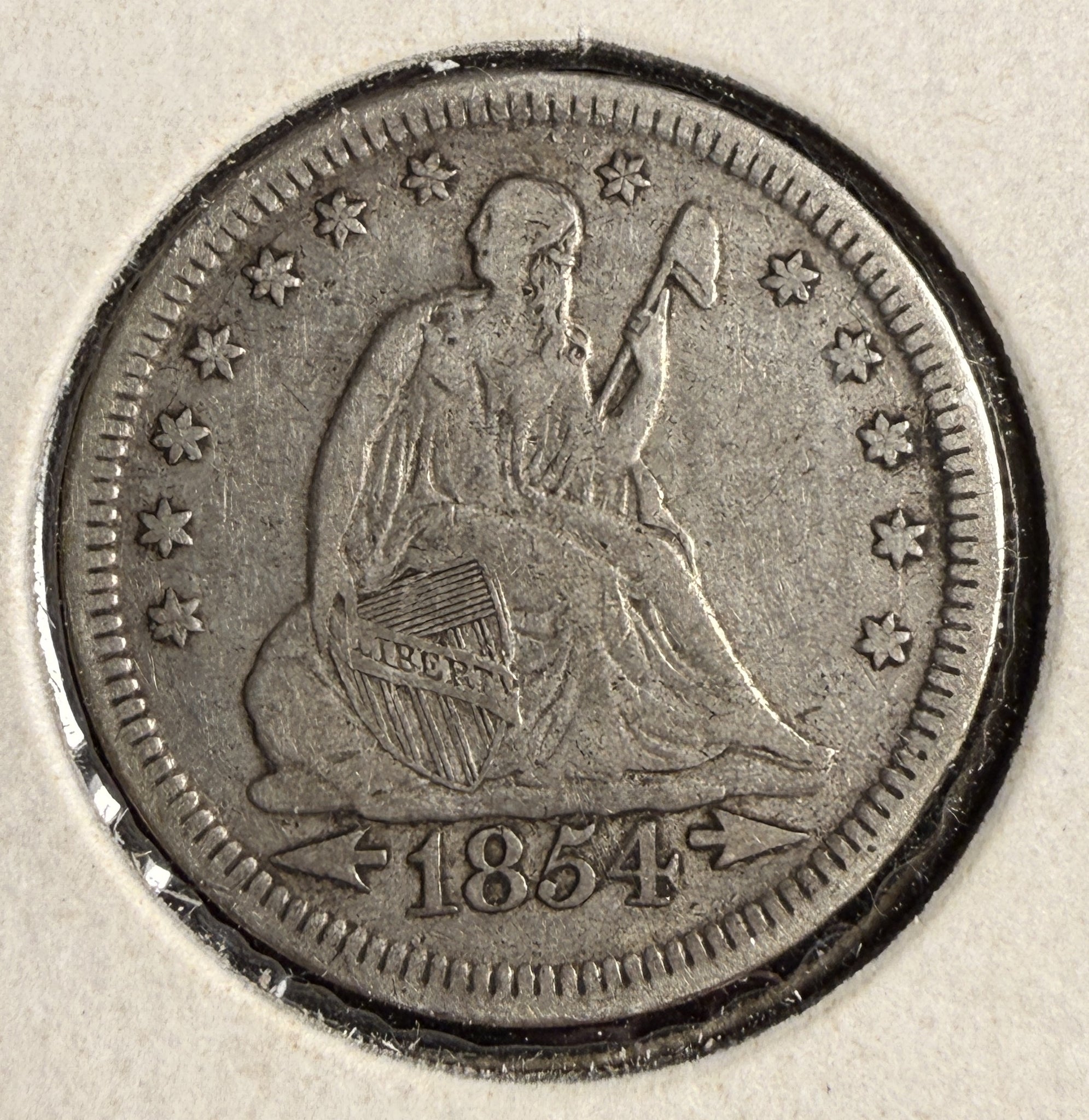 1854 Seated Liberty Quarter, Arrows. Circ, (16763)