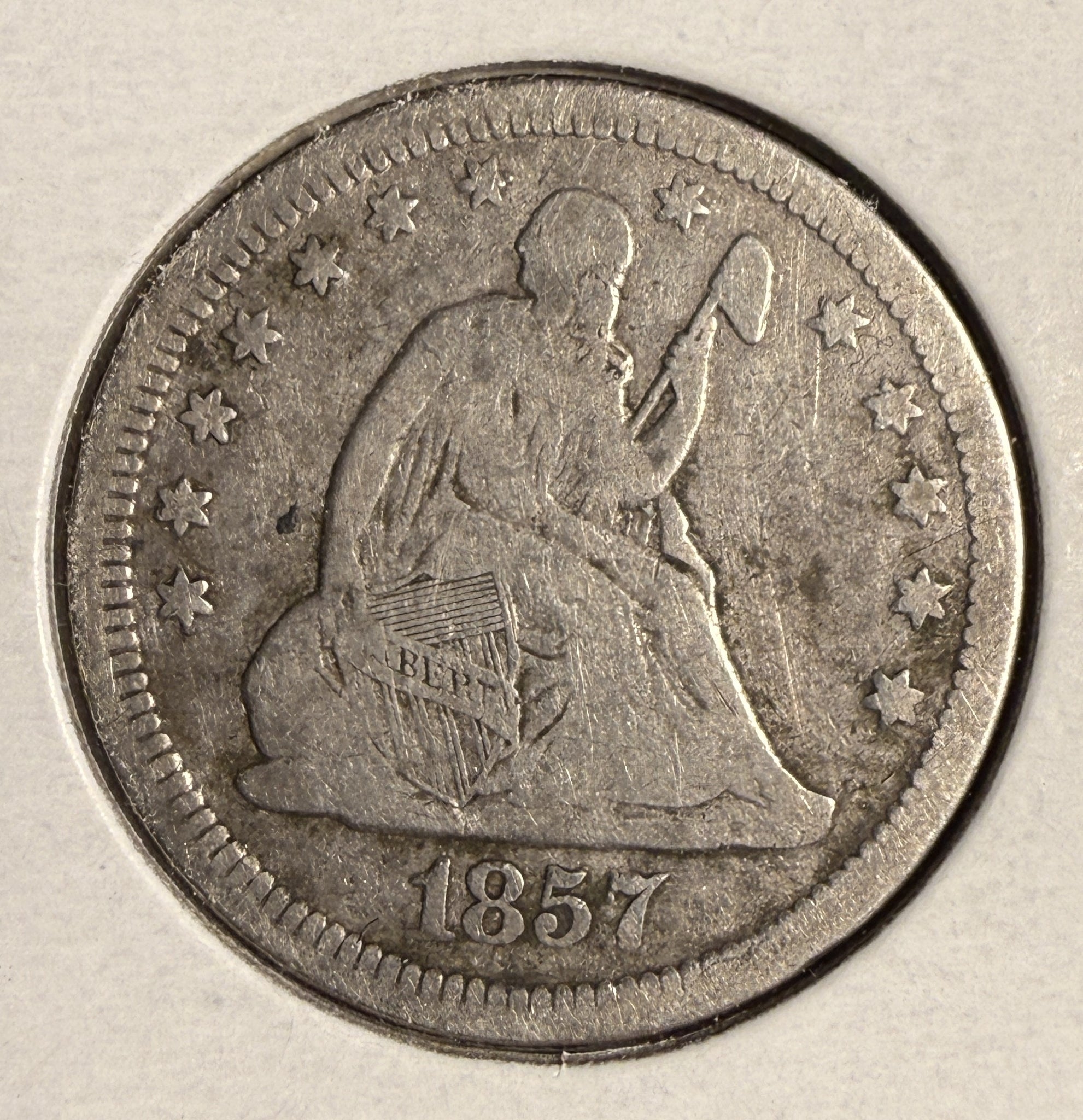 1857 Seated Liberty Quarter, Circ, (16765)
