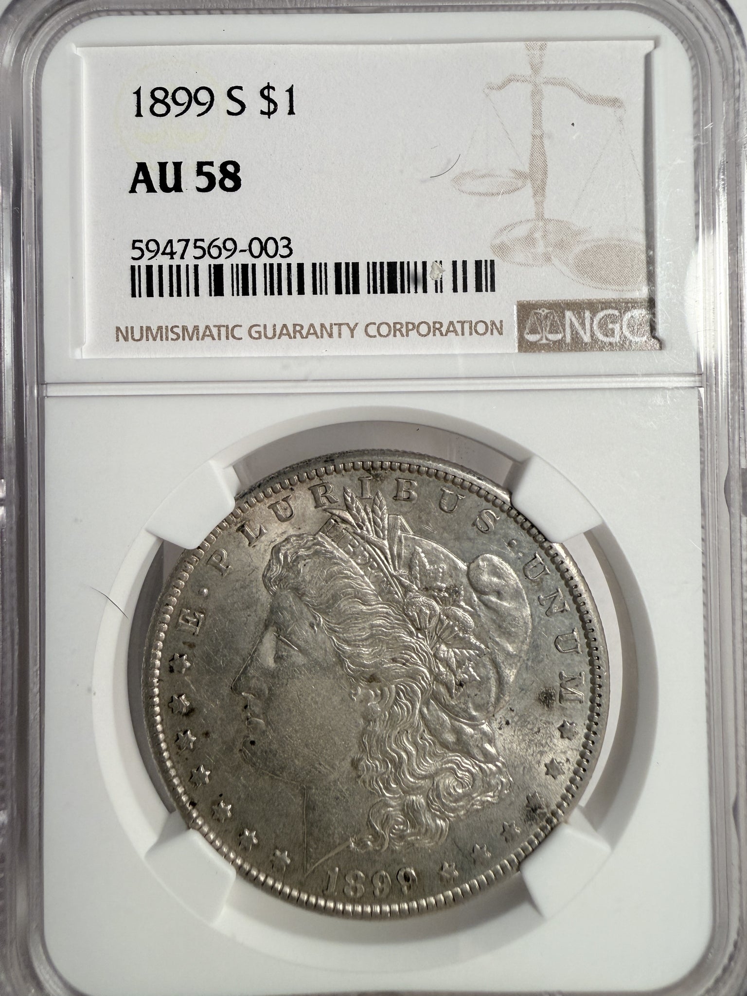 1899-S Morgan Silver Dollar, AU58 NGC (13342)