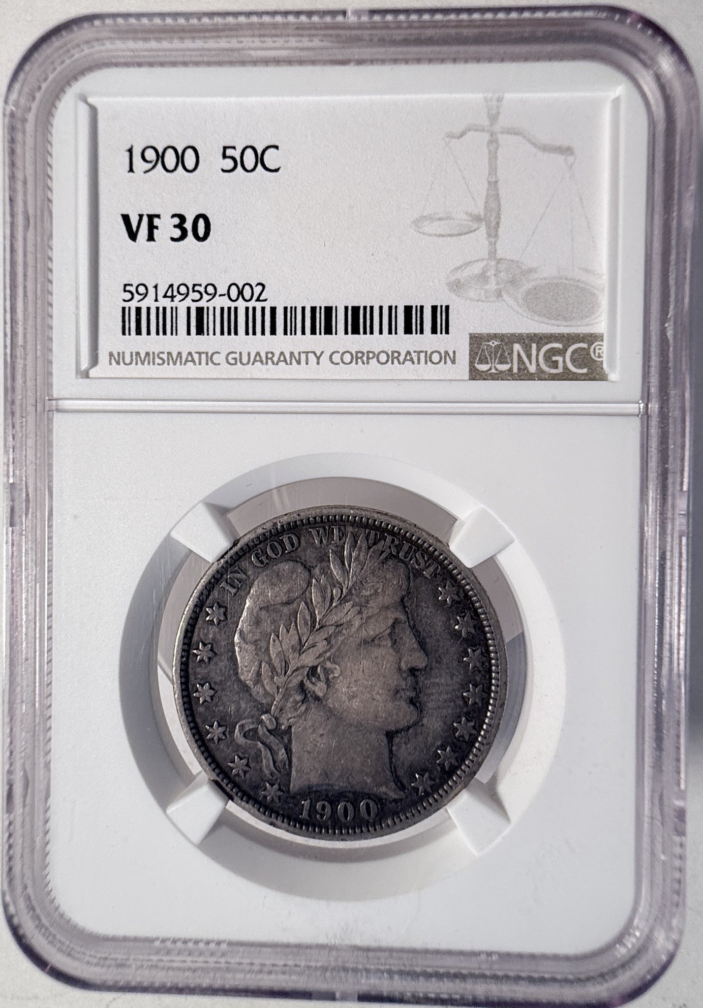 1900 Barber Half Dollar, VF30 NGC. (13546)