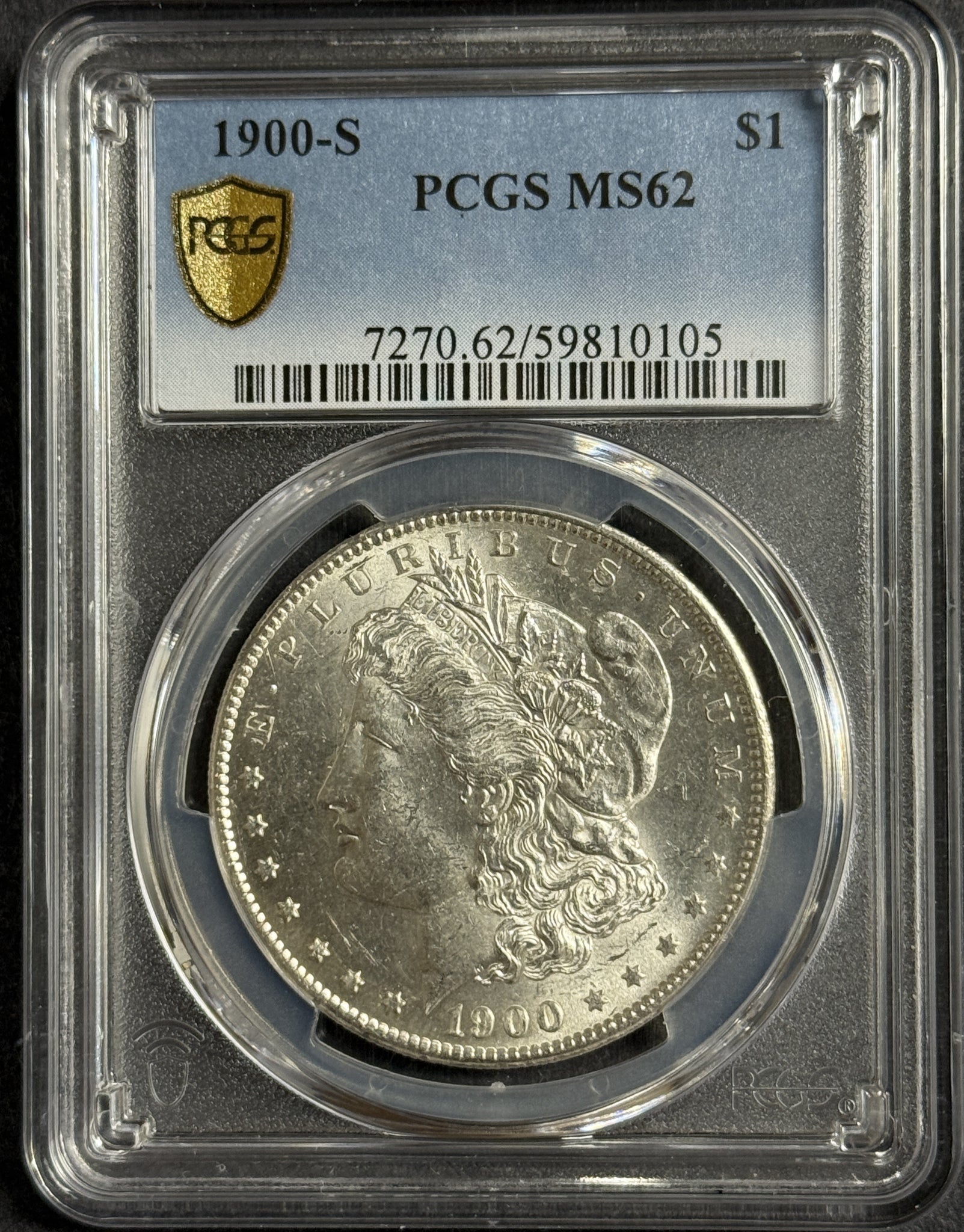 1900-S Morgan Silver Dollar, MS62 PCGS Gold Shield, (12391)