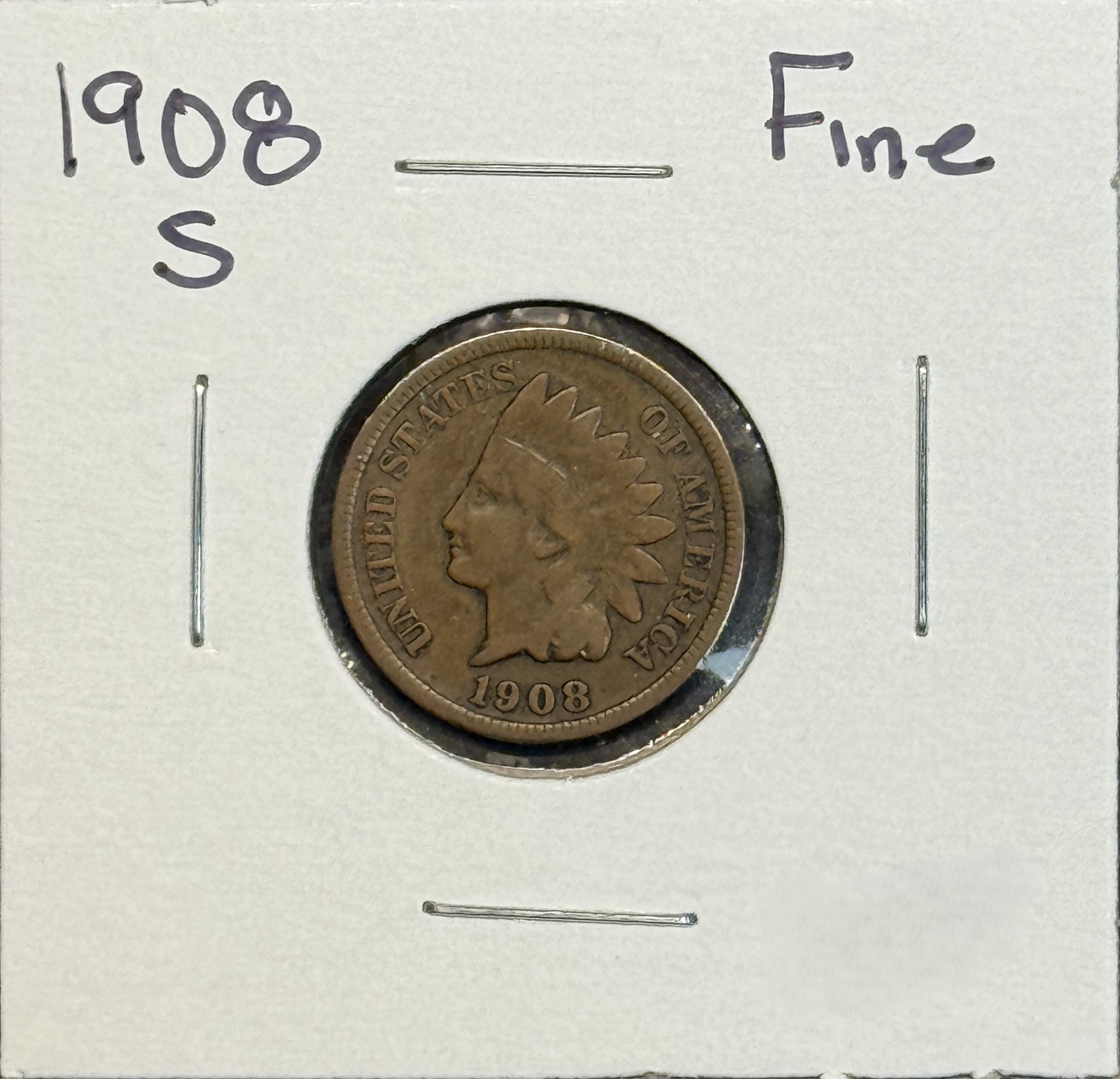 1908-S Indian Head Cent, Fine. (11361)