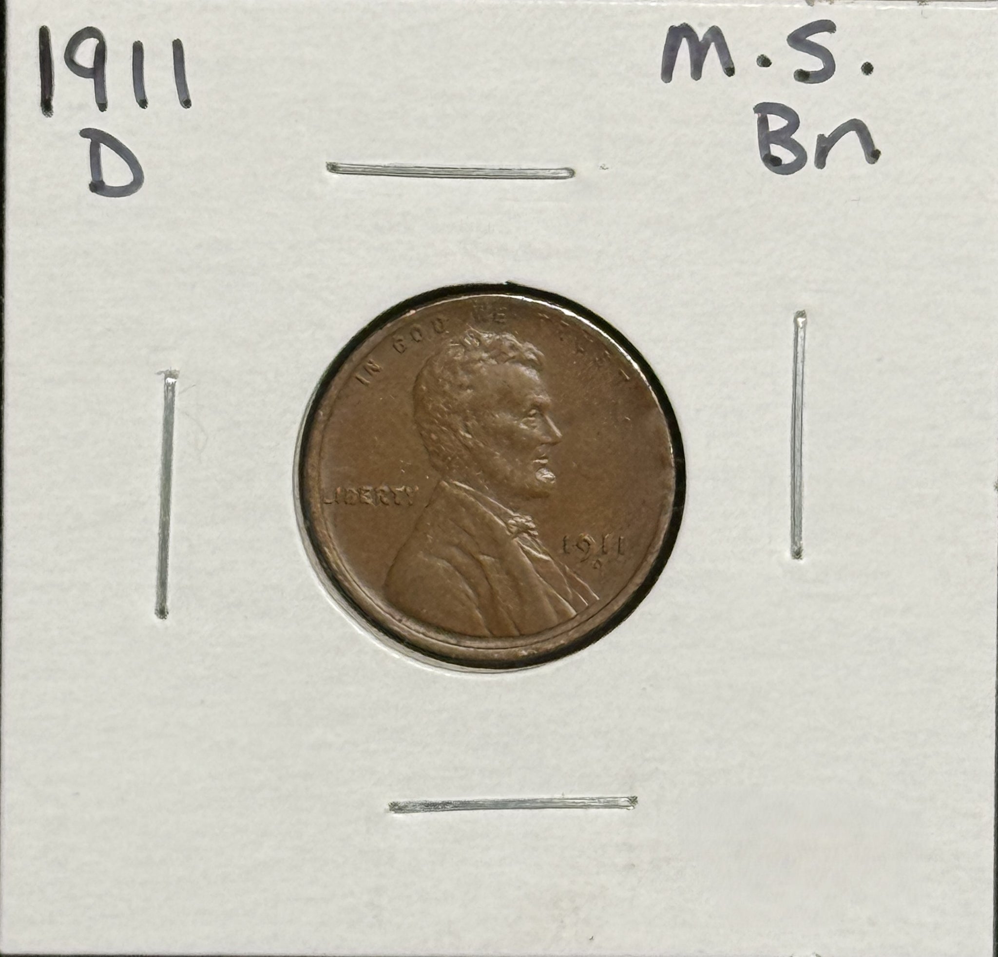 1911-D Lincoln Cent. MS60+BN, (11634)