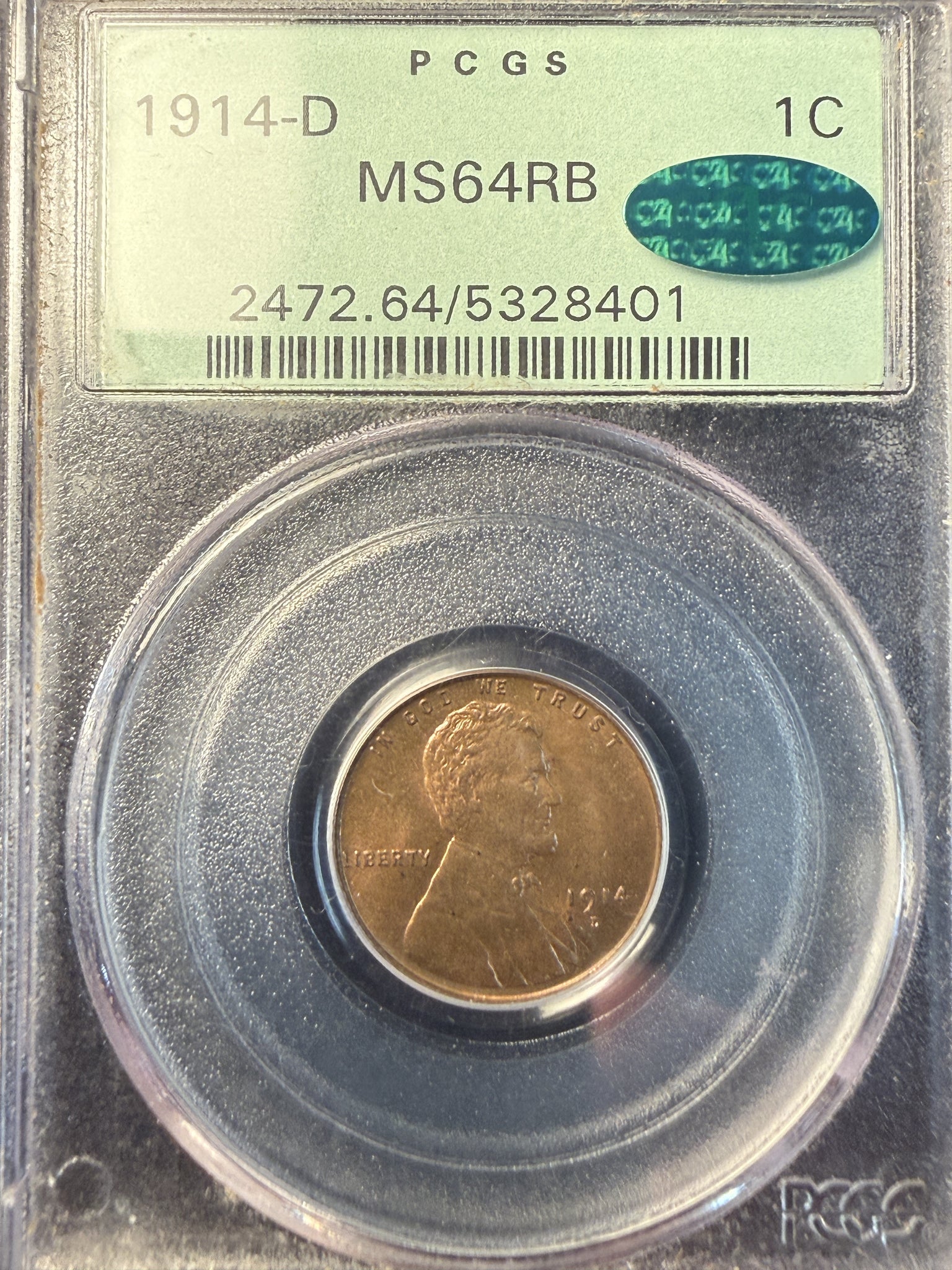 1914-D Lincoln Wheat Cent, MS64RB PCGS+CAC, OGH (14996)