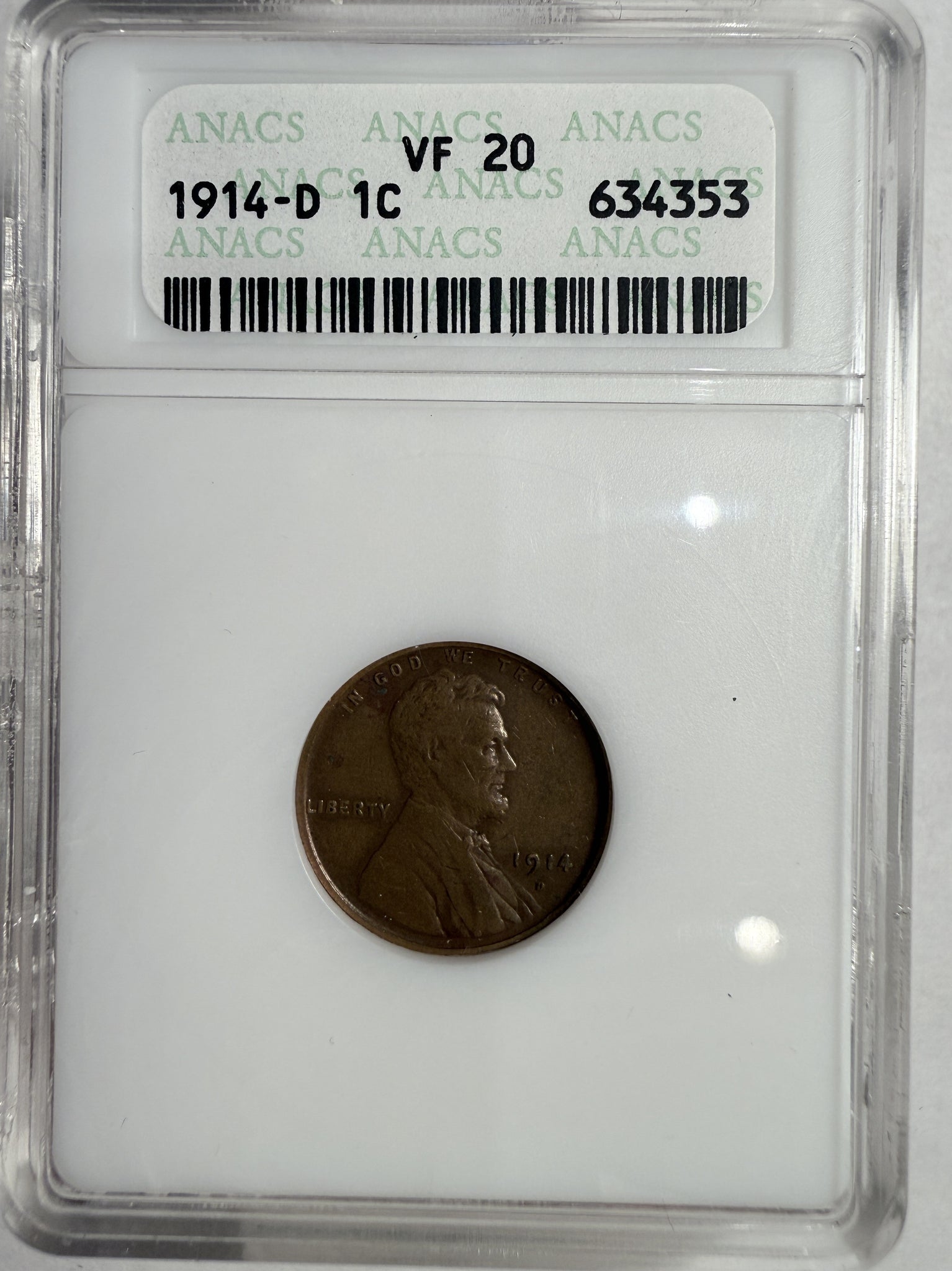 1914-D Lincoln Wheat Cent, VF20 ANACS, (13254)