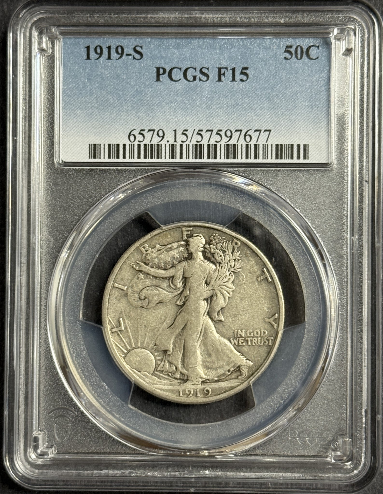 1919-S Walking Liberty Half Dollar, F-15 PCGS (12357)