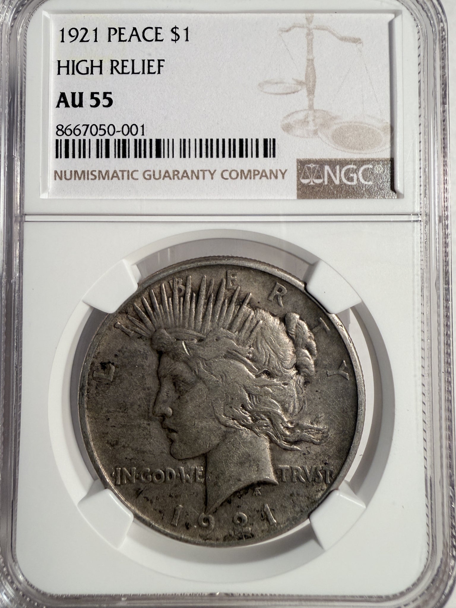 1921 Peace Silver Dollar, AU55 NGC (13348)