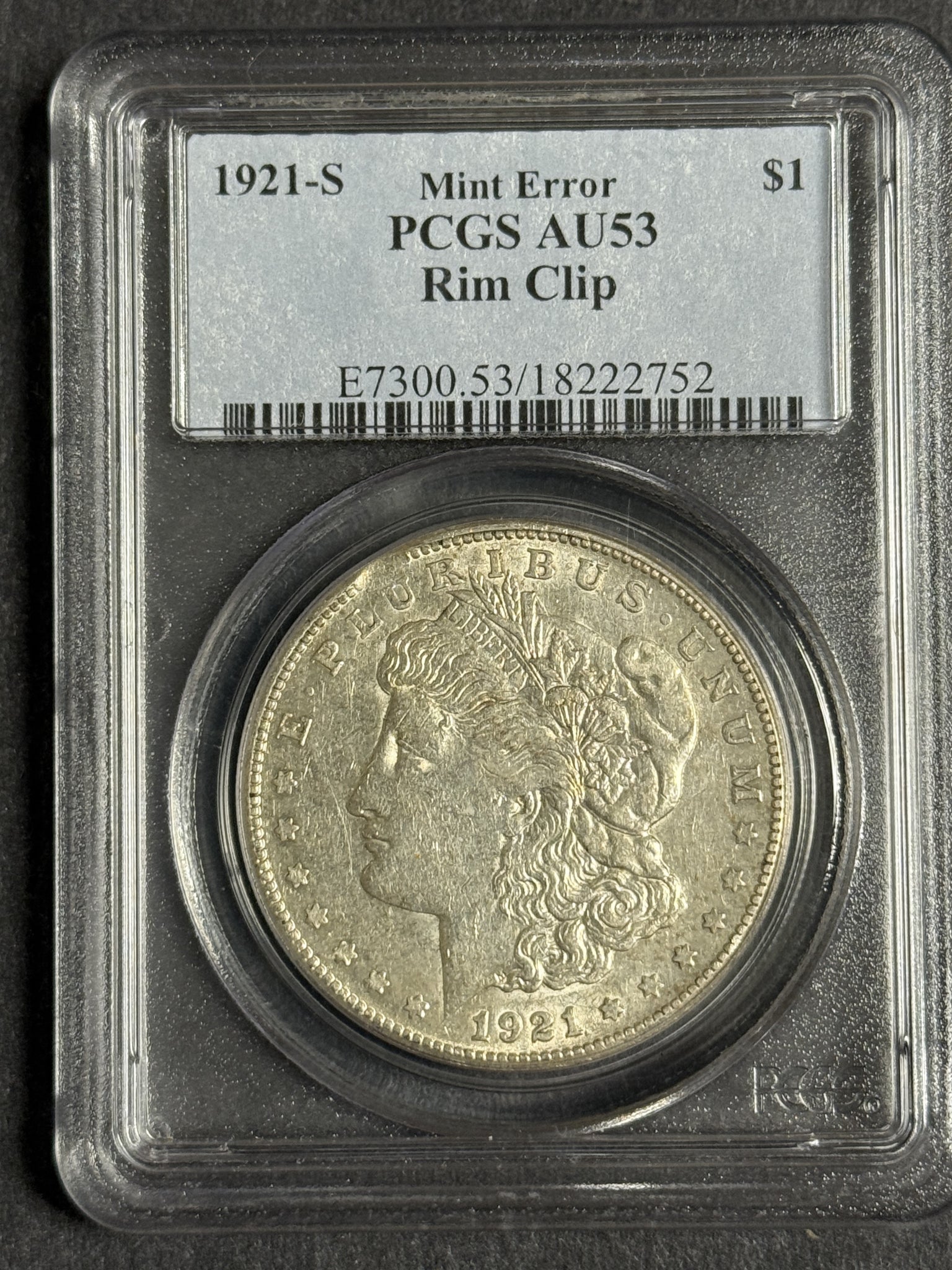 1921-S Morgan Silver Dollar, AU53 PCGS Rim Clip, (12407)