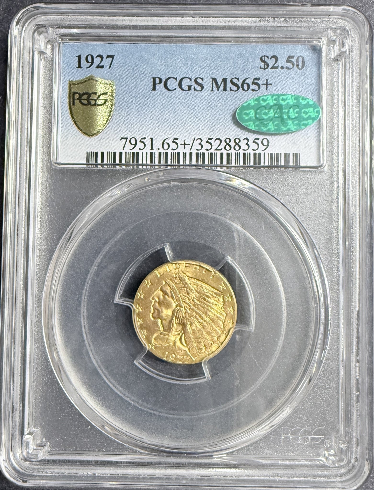 1927 $2-1/2 Indian Gold Quarter Eagle, MS65+ PCGS+CAC (14031)