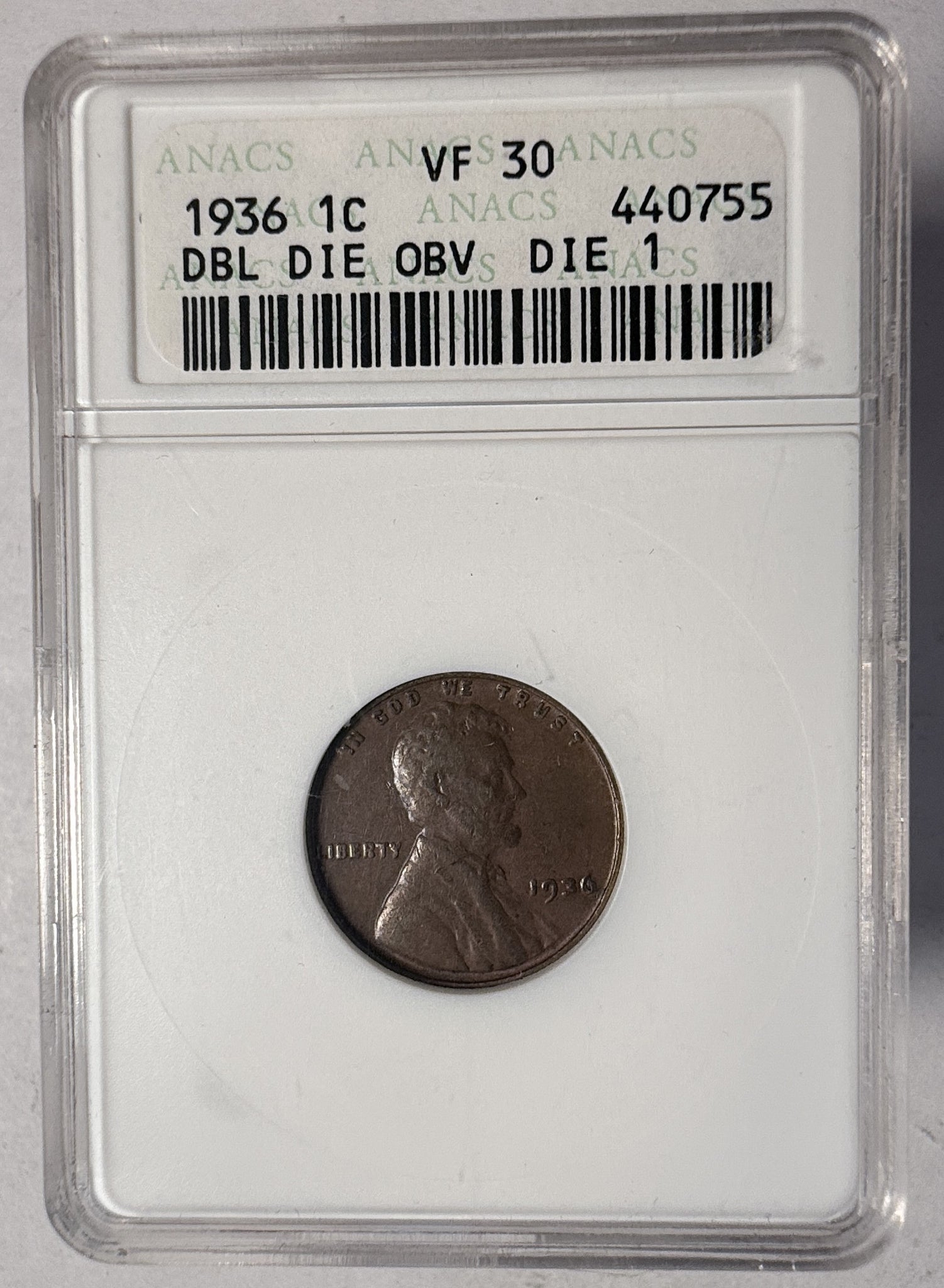 1936 DDO Lincoln Wheat Cent, VF30 ANACS. (13514)