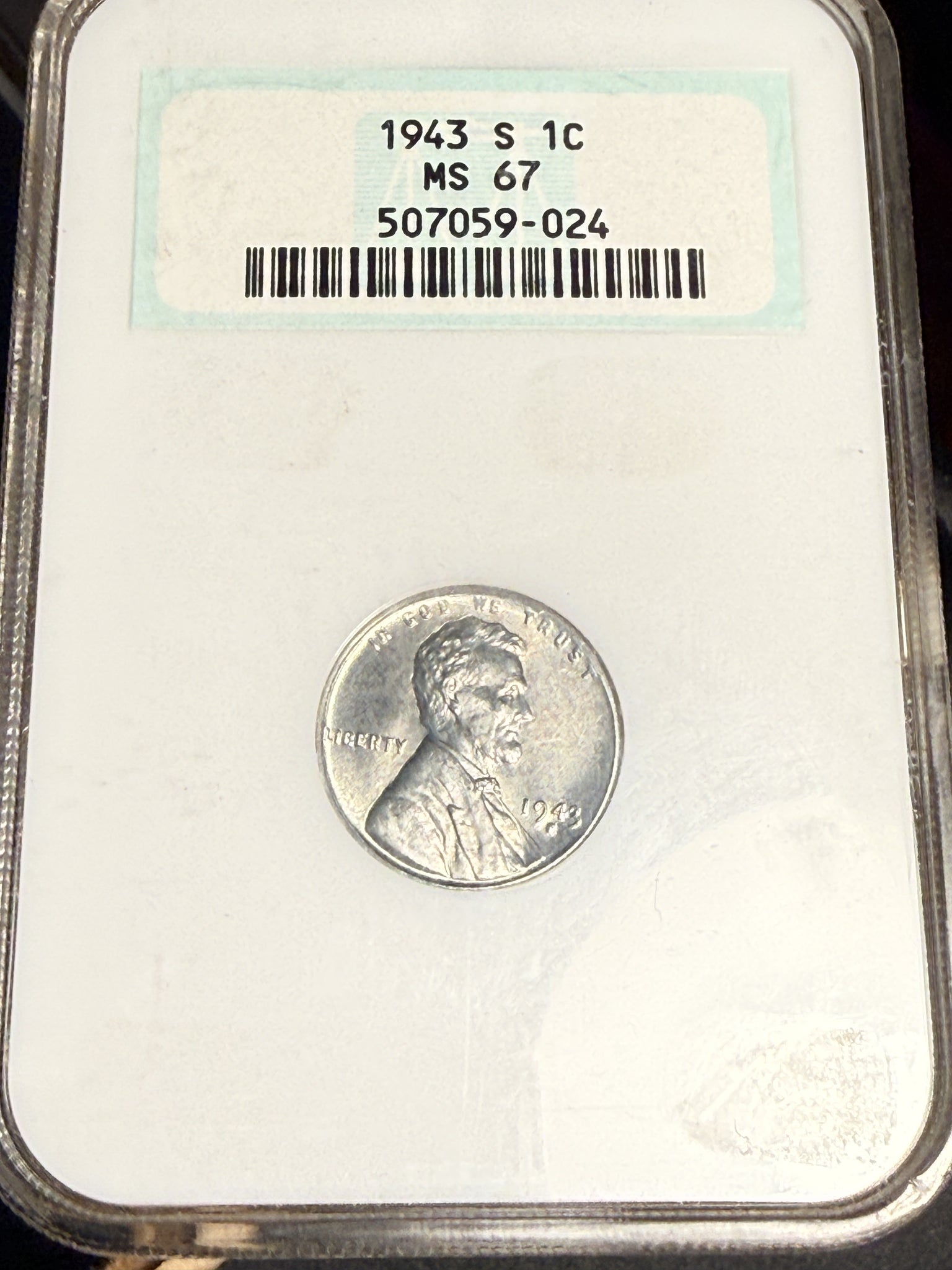 1943-S Lincoln Wheat Cent, Steel, MS67 NGC (16608)