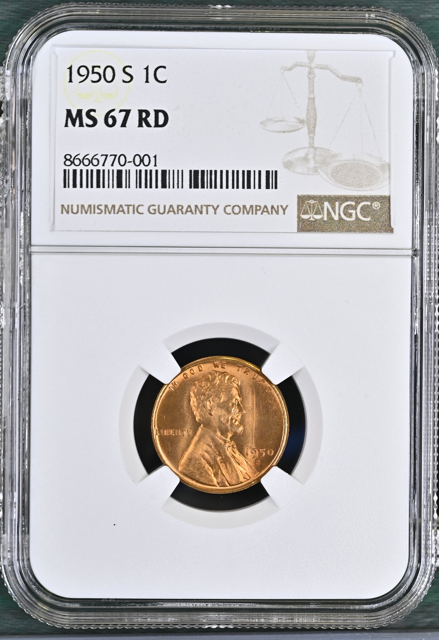 1950-S Lincoln Wheat Cent, Steel, MS67RD NGC (770001)