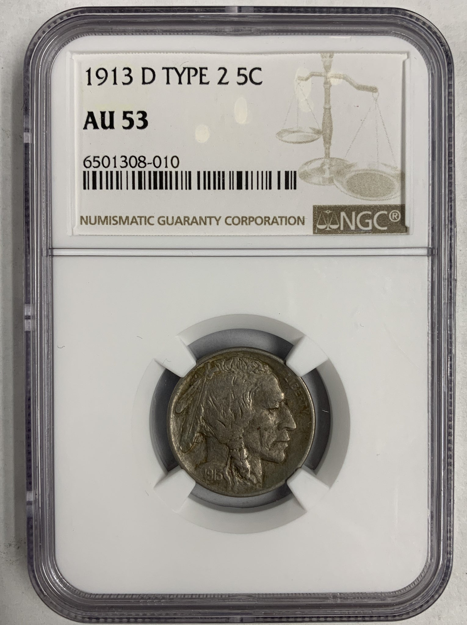 1913-D T-2 Buffalo Nickel, AU-53 NGC