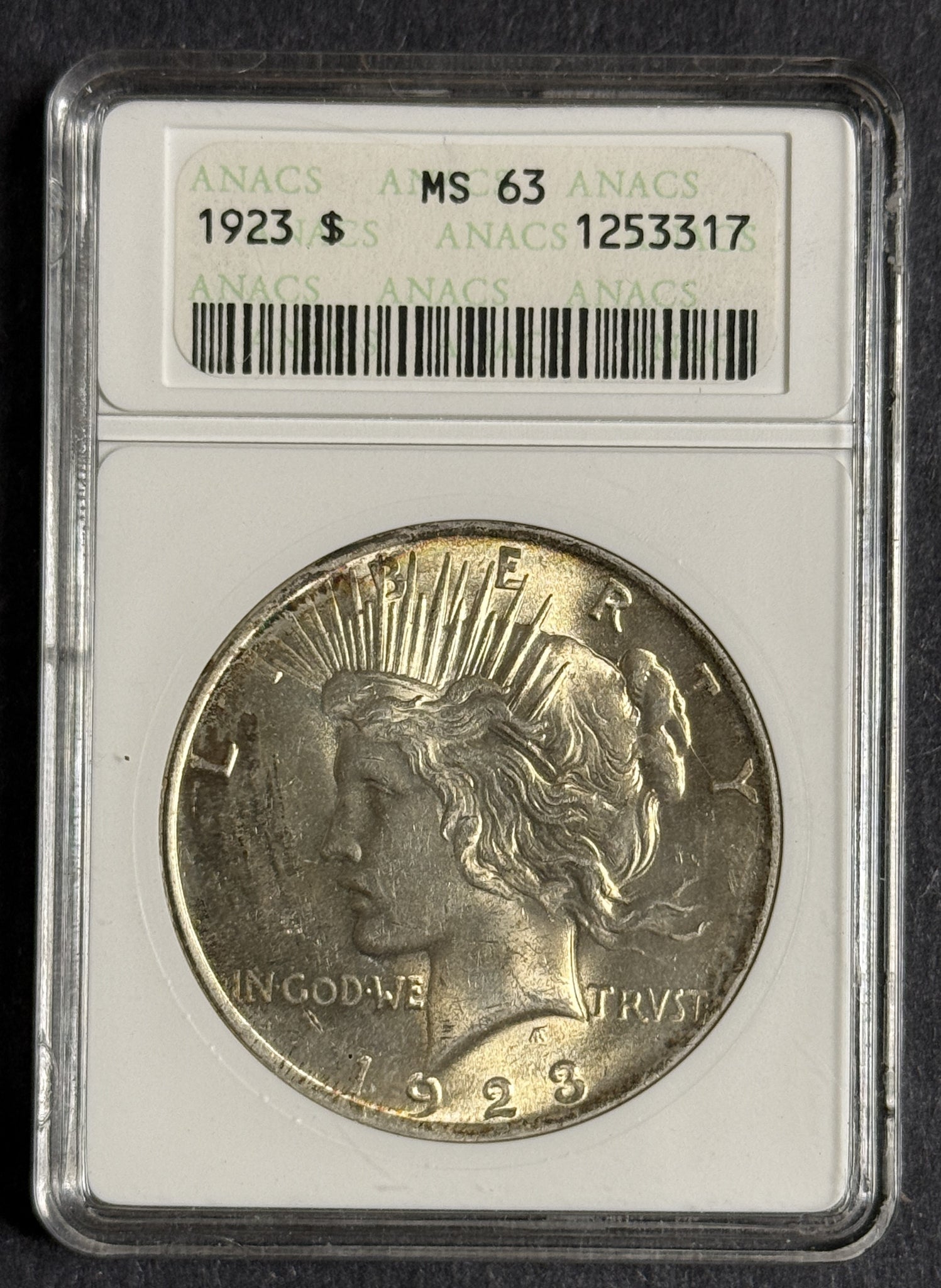 1923 Peace Silver Dollar, MS63 ANACS, (12428)