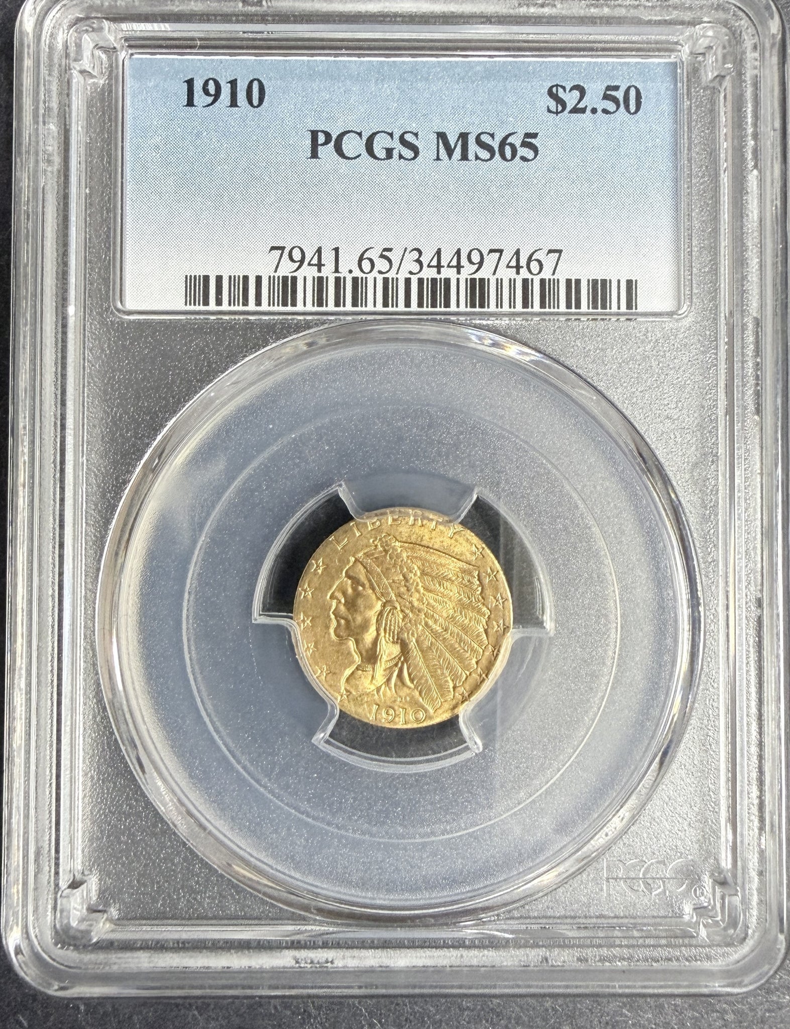 1910 $2-1/2 Indian Gold Quarter Eagle, MS65 PCGS (13990)