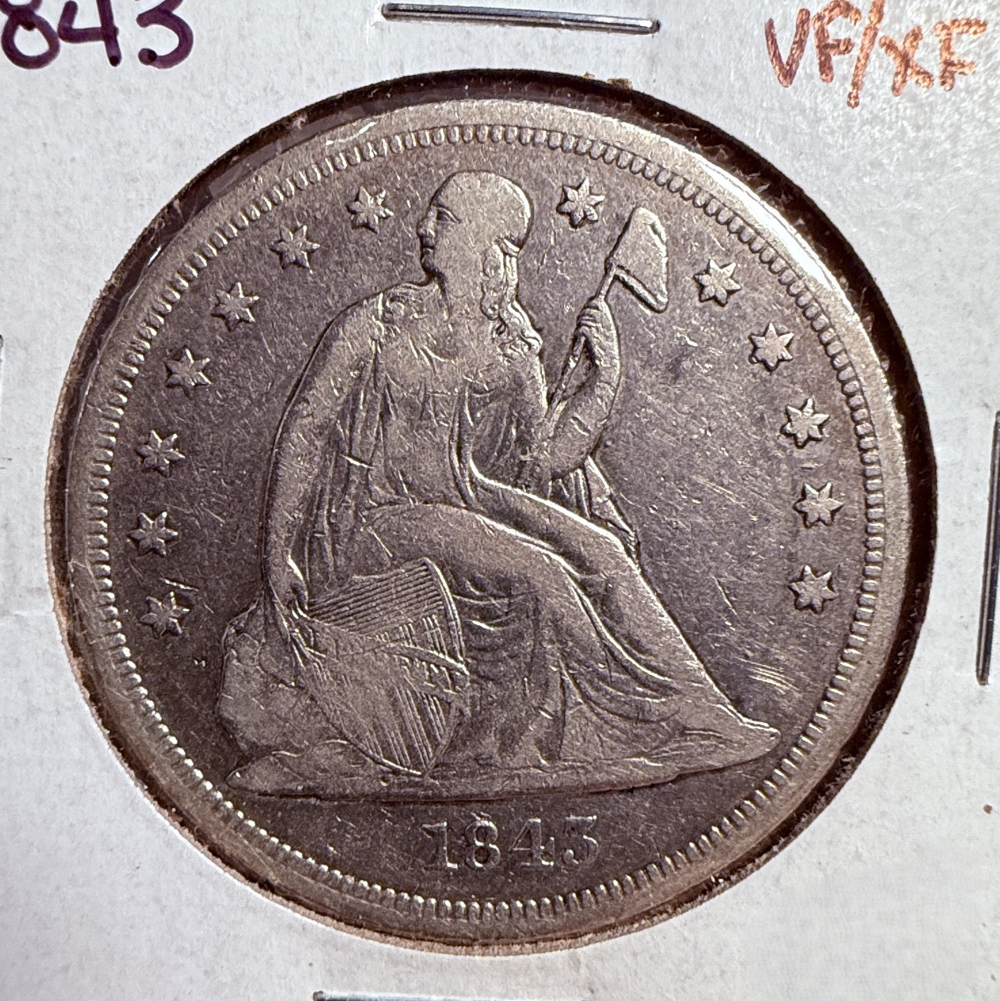 1843 Seated Liberty Silver Dollar, Circ. (13800)