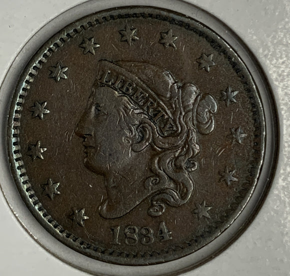 1834 Large Cent XF, Large8, Small Stars, Med Letters