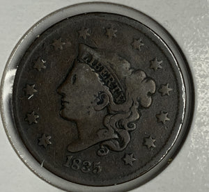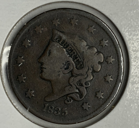 1845 Large Cent VF, S-8, Small-Stars, VF