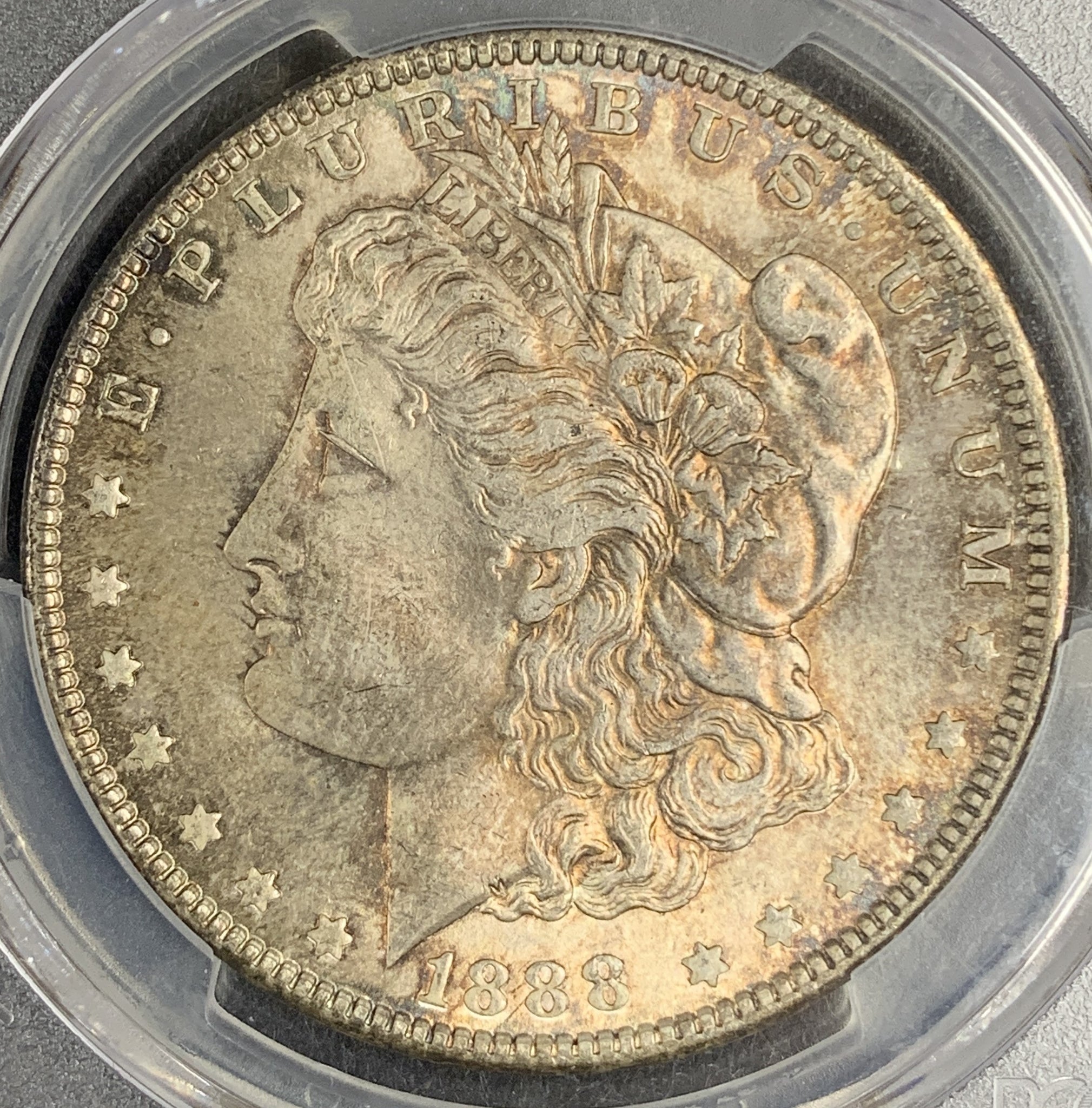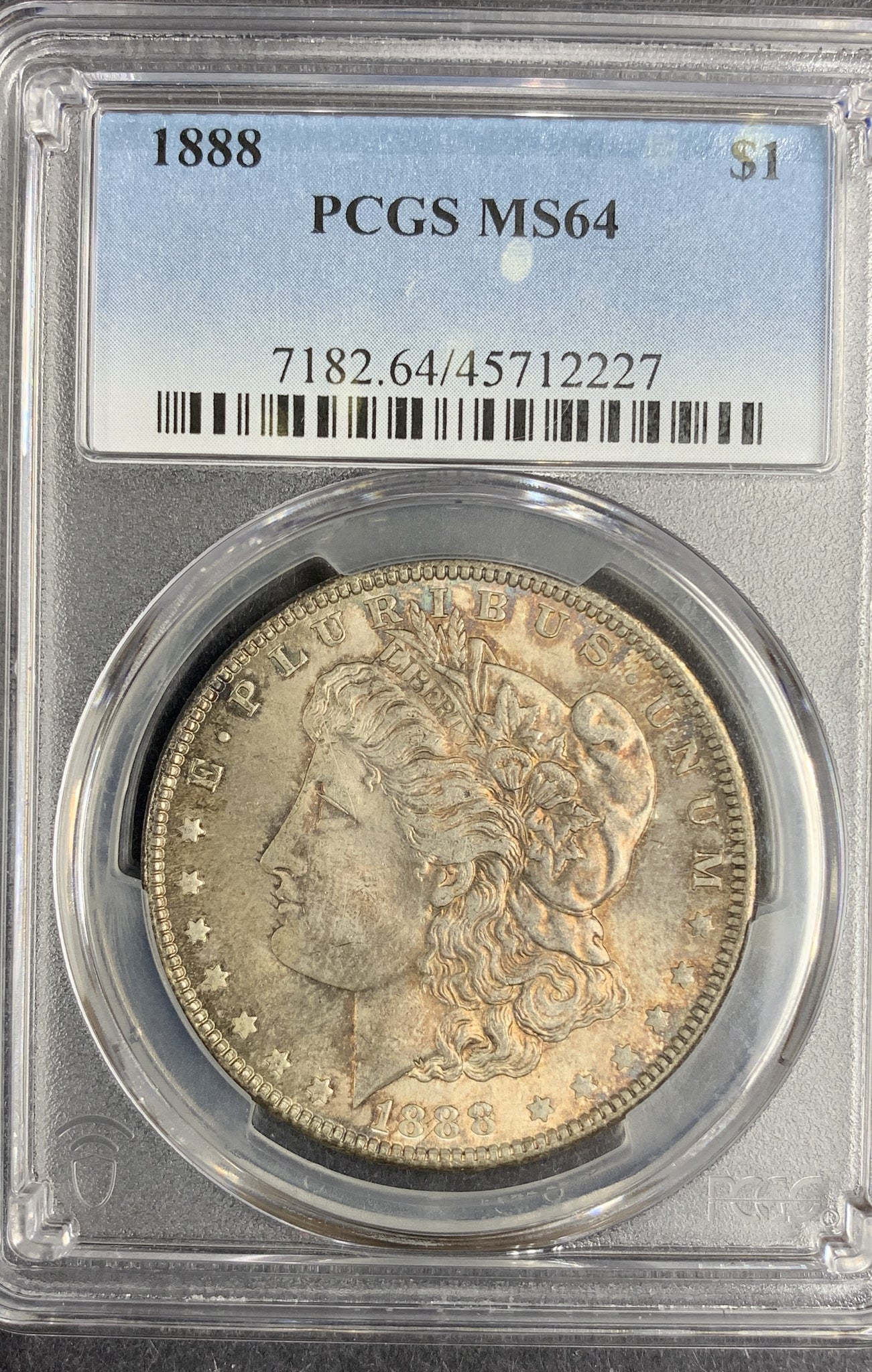 1888 Morgan Silver Dollar, MS64, PCGS. Great Eye Appeal, Beautifully Toned